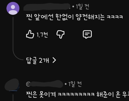 [흥미돋]찐 앞에서 한 없이 얌전해지는 낭만부부모음 작성자레ㄷ라잇스탑사인넌어때날믿니|작성시간26.02.27|조회수41,300 목록 댓글 16 글자크기 작게가 글자크기 크게가 출처: 여성시대 레드라잇스탑사인넌어때날믿니 다음검색 현재 게시글 추가 기능 열기 북마크 공유하기 신고 센터로 신고 댓글 댓글 16 댓글쓰기 답글쓰기 댓글 리스트 작성자불로케리 | 작성시간 26.02.28 진짜 벽이 느꺼진다 작성자대충알고좋아하고다알고싫어하자 | 작성시간 26.02.28 됐!어요~! 작성자sodasma | 작성시간 26.02.28 아 머릿고기회장님ㅋㅋㅋㅋㅋㅋㅋ 작성자쟝포니 | 작성시간 26.02.28 진짜 이길 수 없다 ㅋㅋㅋㅋㅋㅋㅋ 작성자금요일에만나요. | 작성시간 26.03.17 됐어요!랑 양심에 맡겨버려~~ 너무 웃기닼ㅋㅋㅋㅋㅋㅋㅋㅋ 댓글 전체보기
