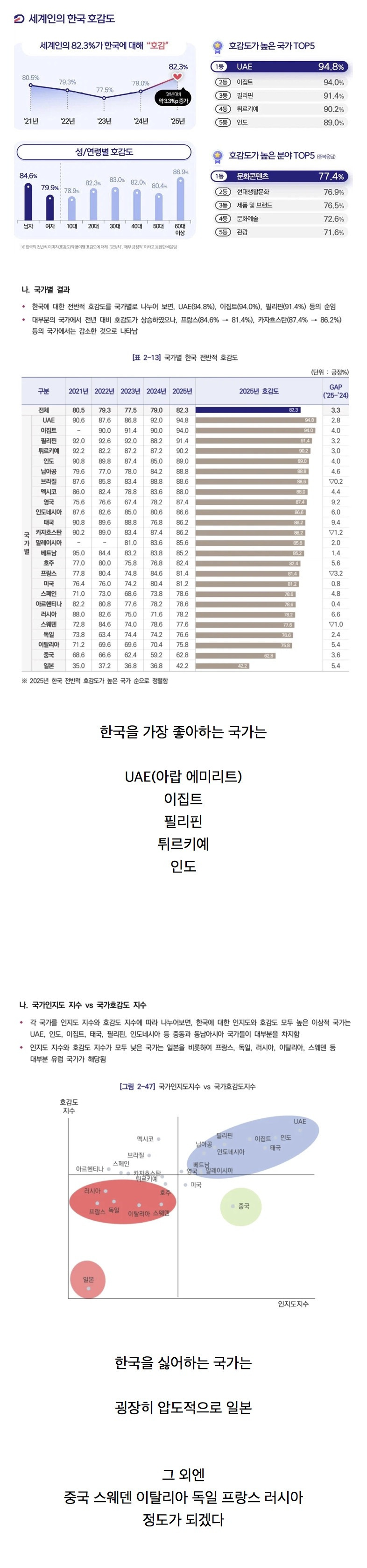작성자맵탱 작성시간 26.02.28 저 조사 설계가 좀 애매하다고 생각함ㅋㅋ 한국을 좋아하는 나라, 싫어하는 나라를 비교하고 싶었으면 호감도를 비교하면 안됐음... 쉽게 표현하면 싫어도 80을 주는 문화권이랑, 좋아도 80점만 주는 나라들 문화권의 점수를 그냥 바로 비교해버린거라...
