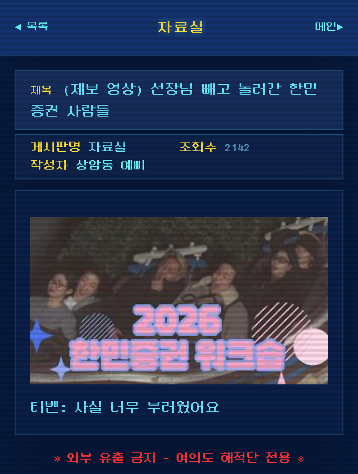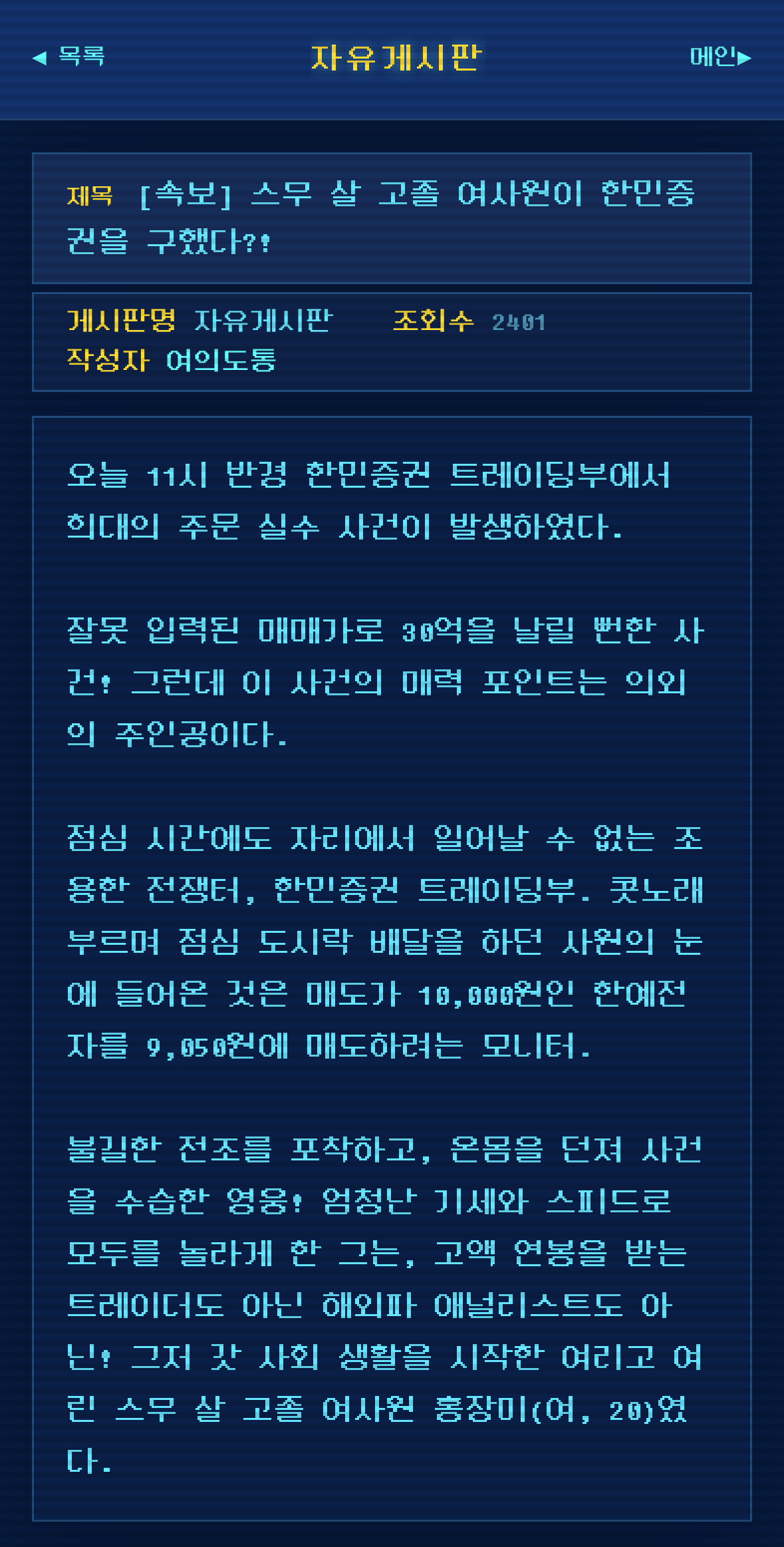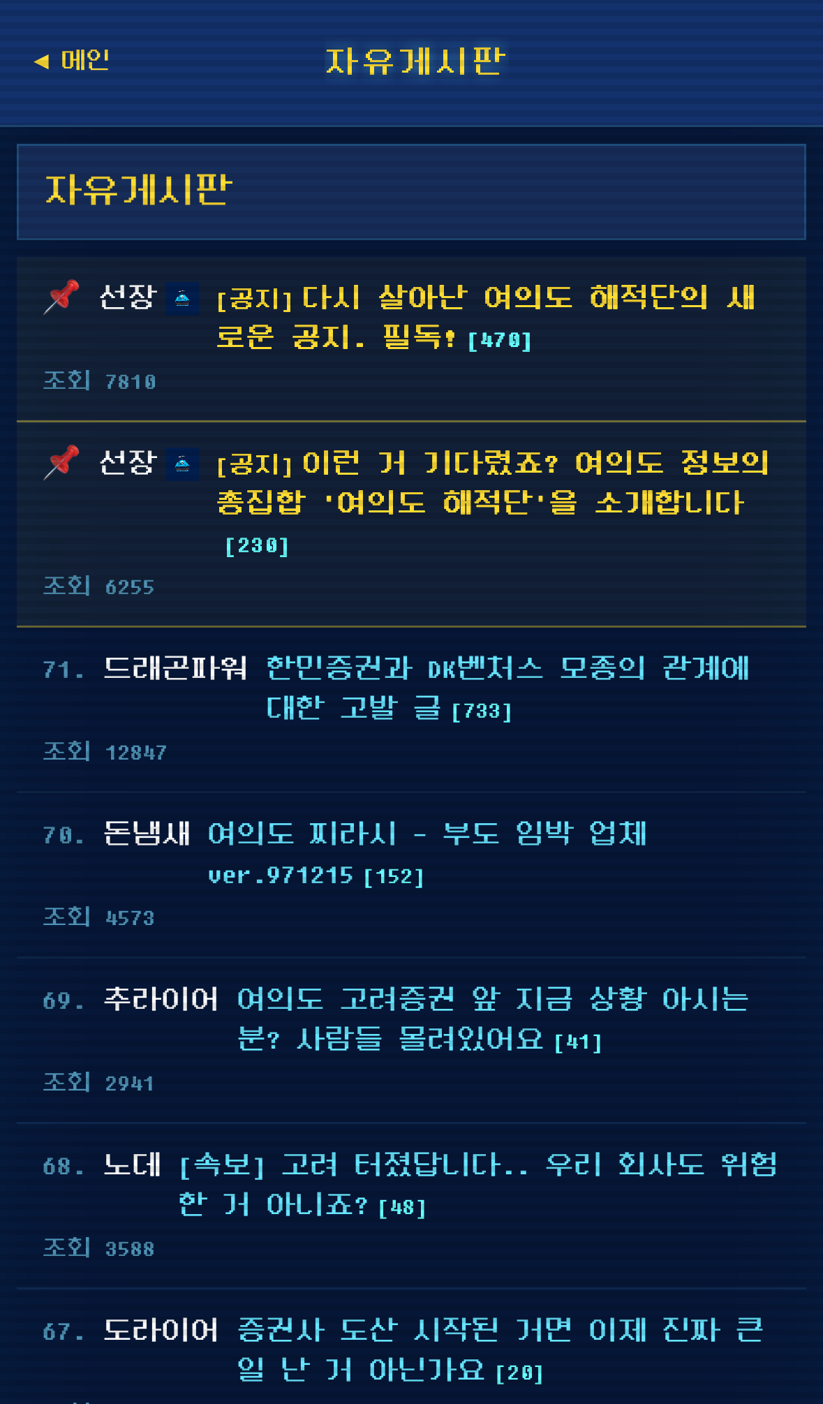 여의도의 온갖 정보들이 올라오는 익명의 PC 통신 사이트임