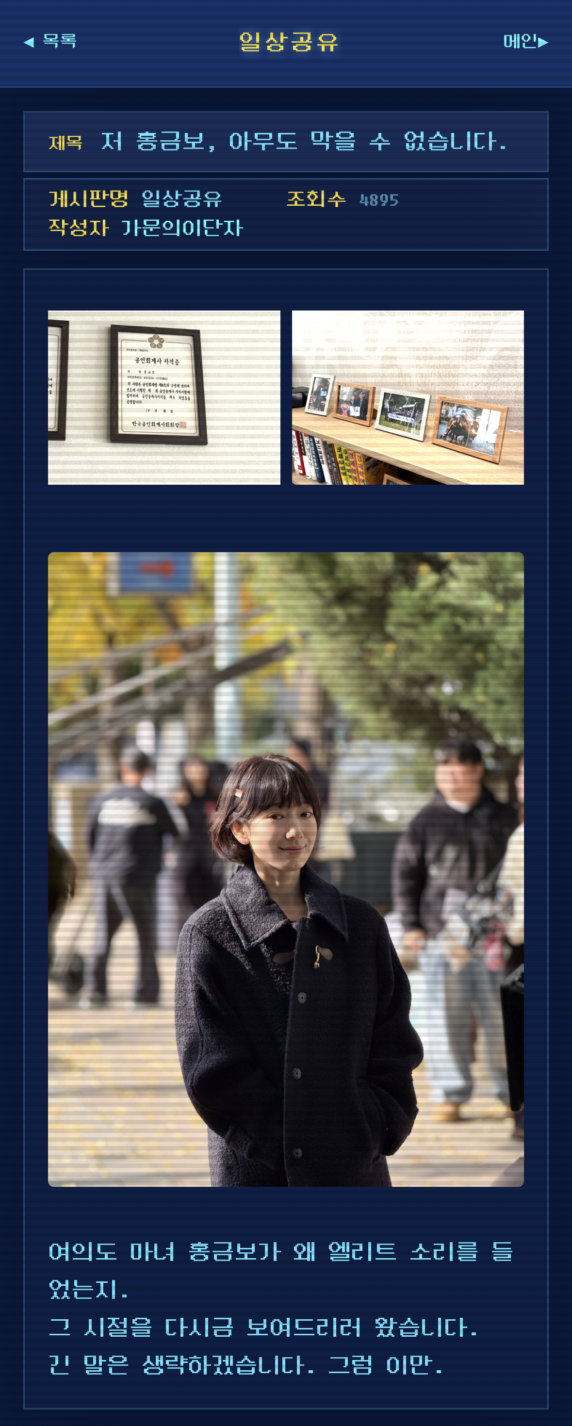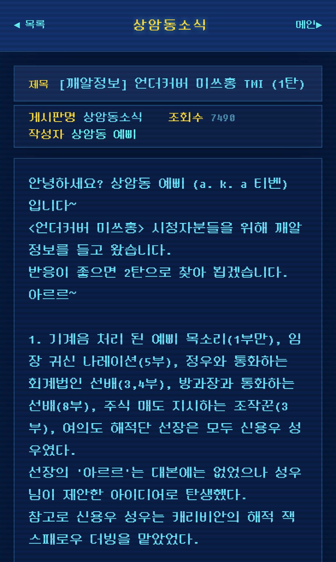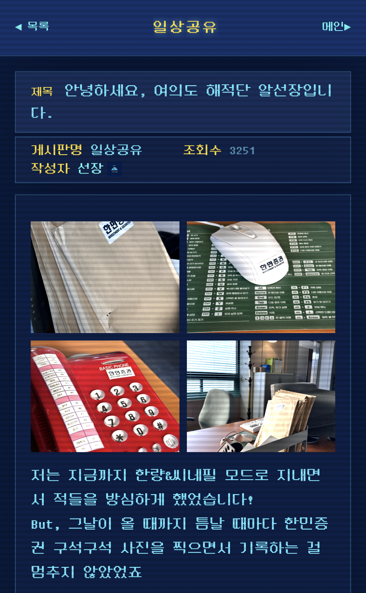 여의도의 온갖 정보들이 올라오는 익명의 PC 통신 사이트임