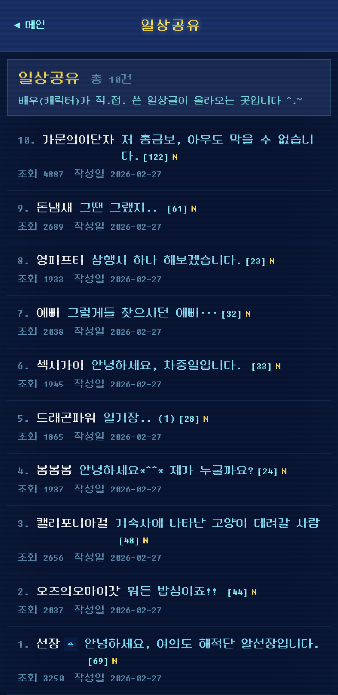 오늘은 일상공유 게시판에 배우들이 직접 썼다는 글과 사진이 올라옴ㅋㅋㅋㅋ