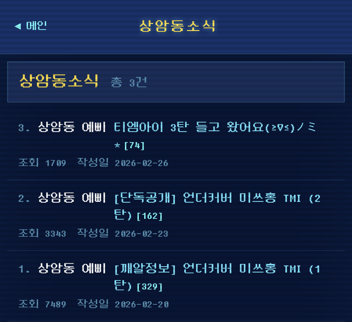 그리고 상암동소식과 자료실 게시판을 통해