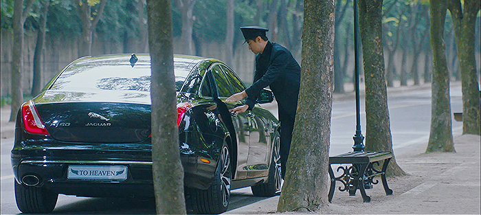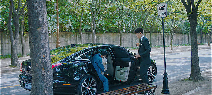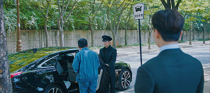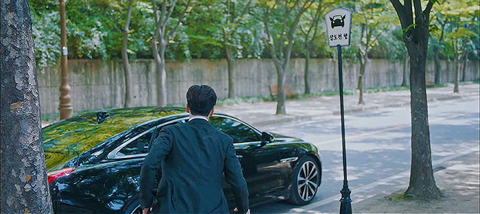 어느 집 앞에 검은색 차량 한 대가 서있다