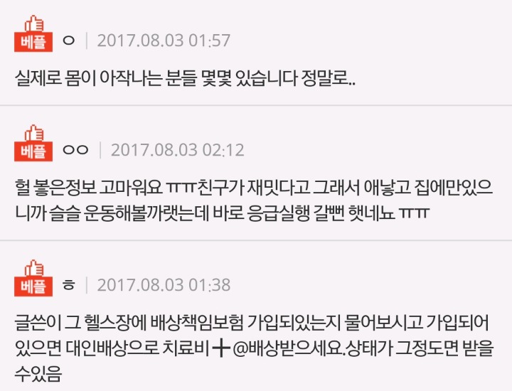 잘못하신건 없지만 스피닝 강사님께서 근육이 녹을 수도 있으니 먼저 헬스를 하고, 운동량을 키워준 뒤 스피닝을 하면 어떠겠느냐는 이야기를 해주셨으면 이렇게까지는 오지 않지 않았을까 싶어요... 스피닝은 반값만 환불 가능하다 하셔서 결국 75.000원반 받았네요.. 휴... 정말 하루에 1만원씩 하셔도 충분하다 생각하는데..