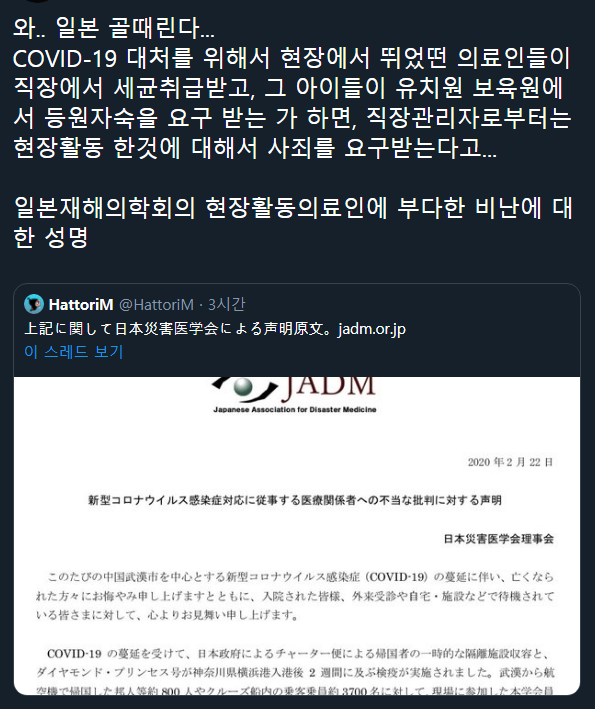 [스크랩] [흥미돋]일본 코로나 왕따 근황 작성자본인 닉네임.|작성시간26.02.28|조회수19,030 목록 댓글 42 글자크기 작게가 글자크기 크게가 출처 : 트위터현장에서 발로 뛴 의료인들 나댔다고 왕따 당하는중 원문출처:트위터 원문주소▶ 다음검색 스크랩 원문 : 엽기 혹은 진실 (세상 모든 즐거움이 모이는 곳) 현재 게시글 추가 기능 열기 북마크 공유하기 신고 센터로 신고 댓글 댓글 42 댓글쓰기 답글쓰기 댓글 리스트 작성자뚜레쥬르 | 작성시간 26.02.28 저기는 집단 정신병이 있는 것 같아 작성자아버지녀 | 작성시간 26.02.28 쟤넨 단체로 유전자에 세균?뭐 이런거 있나정상이 아니군 작성자누더기카넥 | 작성시간 26.02.28 으 ㅈ뽄답다~ 작성자뀨꺄꺼 | 작성시간 26.02.28 저것도 나라임? 그냥 존나큰 정신병동아님? 작성자부메리카노 | 작성시간 26.03.01 하여간 유사국가 ㅉㅈ 댓글 전체보기