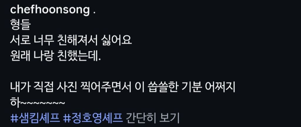 작성자물 흘러가듯 자연스럽게 작성시간 26.02.28 삼각관계네 손종원을좋아하는윤남노를좋아하는김풍을좋아하는손종원