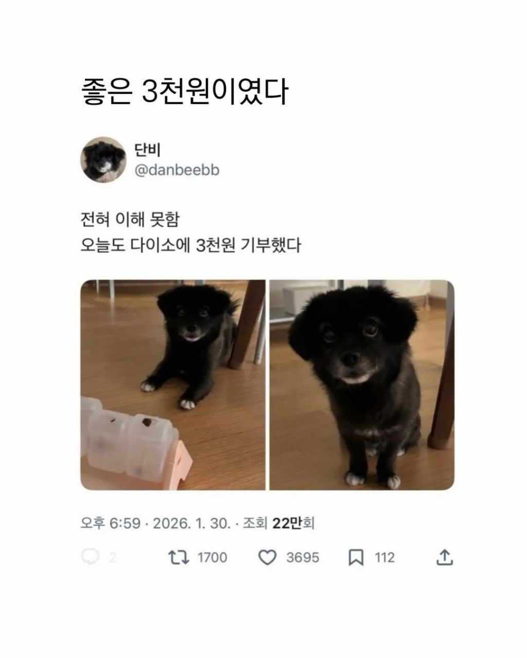 [스크랩] [흥미돋]좋은 3천원이였다,, 작성자비혼주의다|작성시간26.02.28|조회수51,760 목록 댓글 35 글자크기 작게가 글자크기 크게가 출처: 여성시대 비혼주의다 ㄱㄱㅇㅇ 다음검색 스크랩 원문 : *여성시대* 차분한 20대들의 알흠다운 공간 현재 게시글 추가 기능 열기 북마크 공유하기 신고 센터로 신고 댓글 댓글 35 댓글쓰기 답글쓰기 댓글 리스트 작성자감자머리 | 작성시간 26.03.01 하 ㅜㅜㅜㅜㅜ ㄱㅇㅇ 작성자대체로멀쩡함 | 작성시간 26.03.01 제가 몰 어떡하면될까여..? 하는 표정이야 작성자고양시 고양이 | 작성시간 26.03.01 하 진짜 사랑해 아가야..ㅠㅠㅠㅠㅠ 작성자큻임단팓빵 | 작성시간 26.03.01 아 미치겠다ㅜㅜㅋㅋㅋㅋㅋ 작성자아기춘식이 | 작성시간 26.03.01 ㅠㅠㅠㅠㅠㅠㅠㅠ귀여워 에구 댓글 전체보기