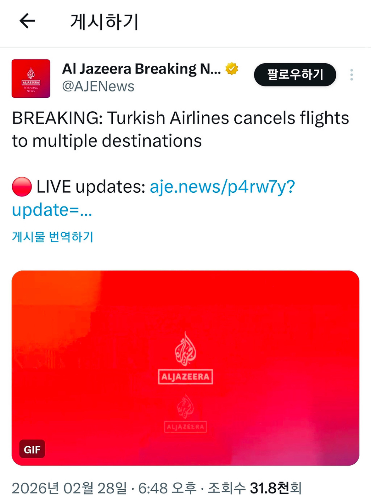 작성자붐업그잡채 작성시간 26.03.01 나 터키쉬에어라인으로 튀르키예 갔다가 미국 들어가야하는데 아 별일 없겠지