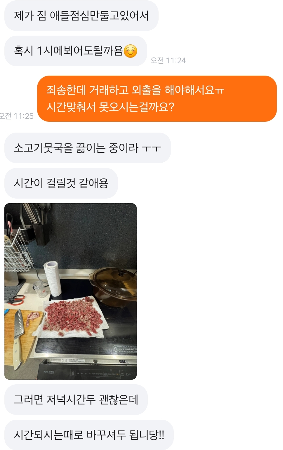 [스크랩] [흥미돋]하 당근 애엄마 걸림 작성자Salt and Light|작성시간26.02.28|조회수127,660 목록 댓글 219 글자크기 작게가 글자크기 크게가 12시애 거래하기로 했는데소고기 뭇국이고 나발이고 왜 약속시간 앞에두고 끓이냐고 다음검색 스크랩 원문 : *여성시대* 차분한 20대들의 알흠다운 공간 현재 게시글 추가 기능 열기 북마크 공유하기 신고 센터로 신고 댓글 댓글 219 댓글쓰기 답글쓰기 댓글 리스트 작성자뀨삐뽀 | 작성시간 26.03.06 소고기 뭇국 싸오면 용서함 답댓글 작성자껄무ㅅH | 작성시간 26.03.08 아잌ㅋㅋㅋㅋㅋ 지나가다 쁌었네 작성자유행가유행가신나는노래나도한번불 | 작성시간 26.03.07 왜저러는데진짜.. 작성자덩더둥셩 | 작성시간 26.03.07 ㅋㅋㅋㅋㅋㅋㅋㅋㅋㅋㅋㅋㅋㅋ아나 개빡 작성자슬픔누리증후군 | 작성시간 26.03.08 거래 파기하고 싶음 댓글 전체보기