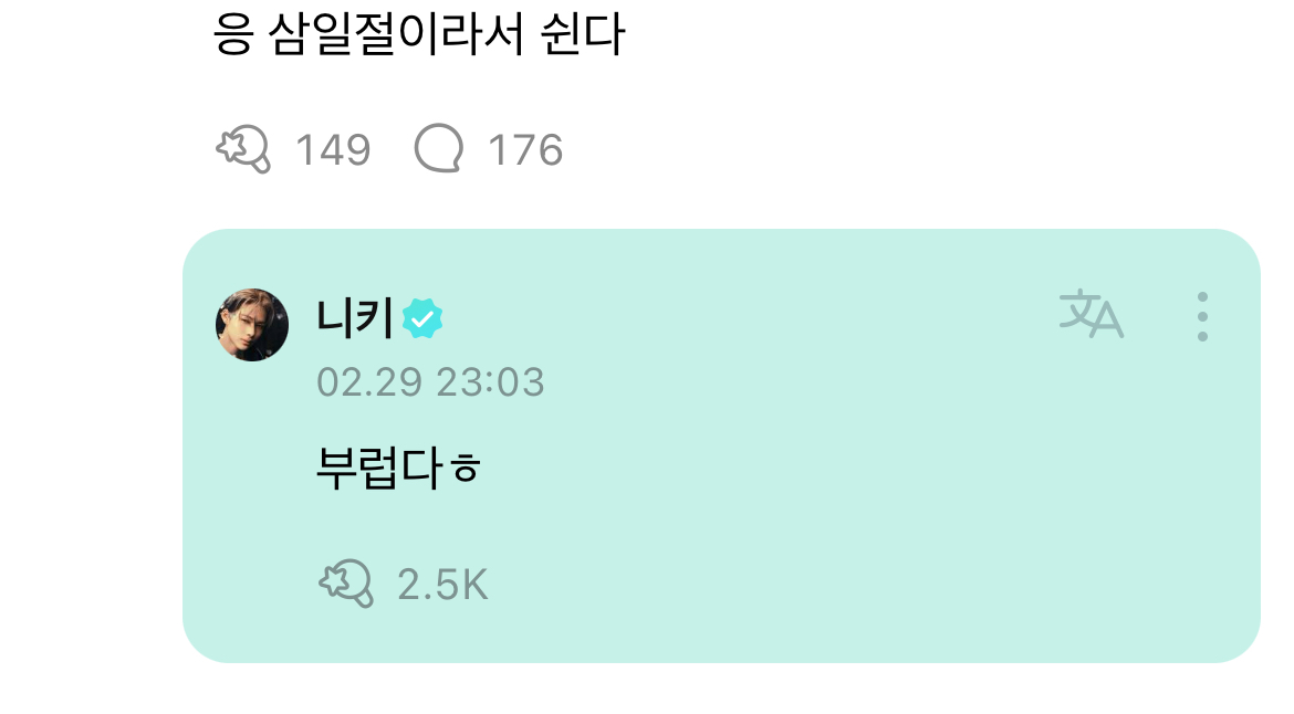 답댓글 작성자마누리오스 작성시간 26.03.11 그렴 니키에리팬여시가 사과문 가져와서 쩌리에 올리던가 왜 글쓴여시 눈치 줌?