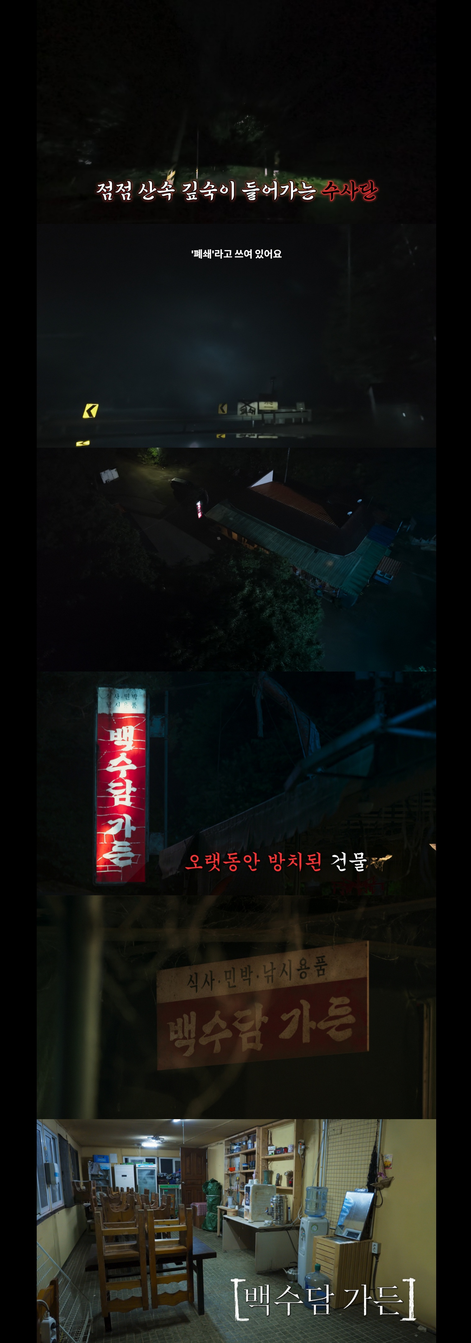 백수담 가든이라는 폐가로 향하는 멤버들