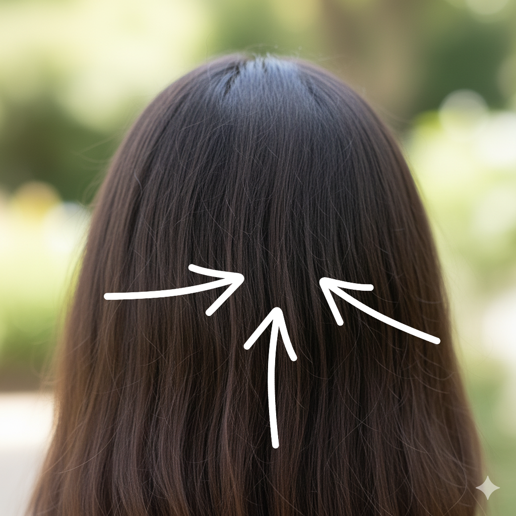 다시 짜서 정수리, 뒤통수, 양 옆통수 중