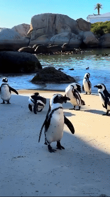 해변에서 일광욕을 하는 펭귄들을 보는 것은 완전히 초현실적으로 느껴진다.