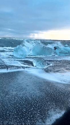 이 초자연적인 경이로움은 빙하 석호에서 나온 빙산들이 해안에 정지해 있는 검은 화산 모래 해변이다.