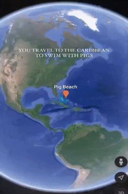 이 해변은 야생 돼지 군락으로만 서식하는 엑수마, 빅 메이저 케이의 무인도에 위치해 있다.