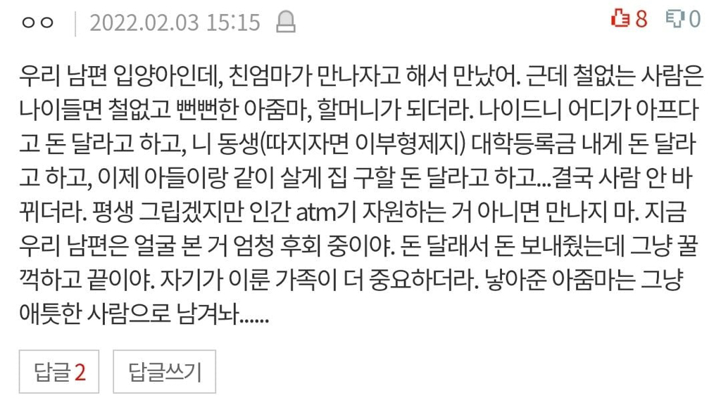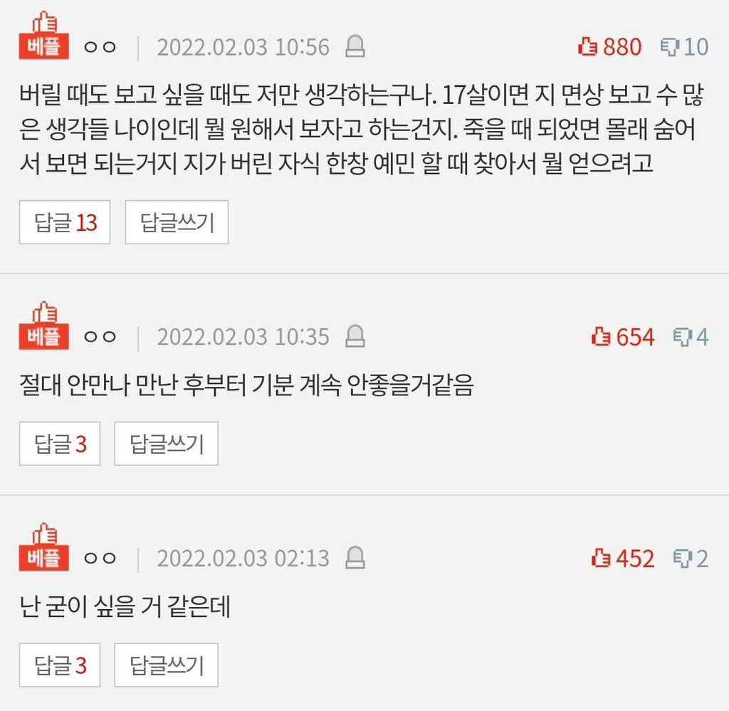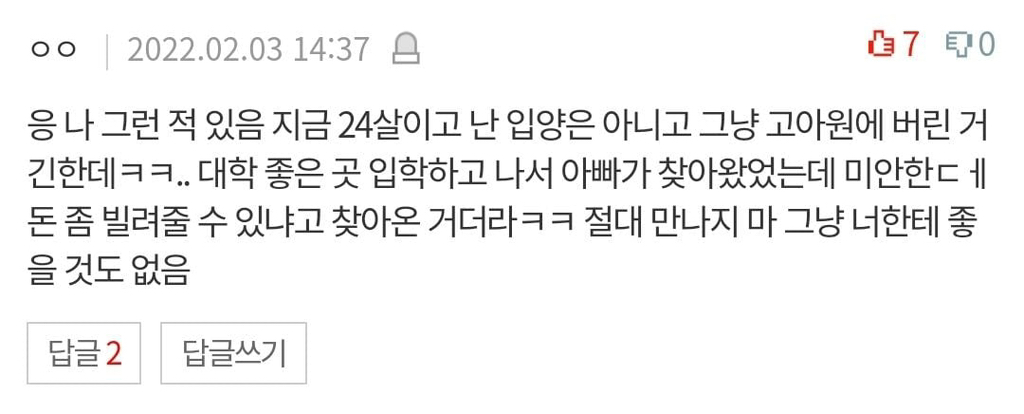 작성자이름없지 작성시간 26.03.05 자식 버린 사람은 역시 일반적인 사고방식을 가진 사람은 아니구나.