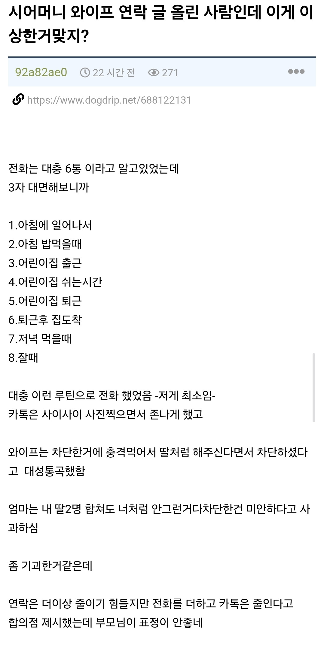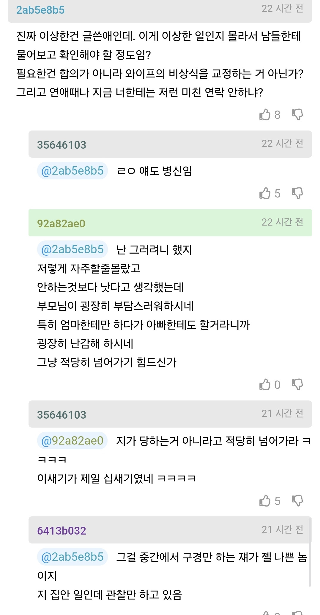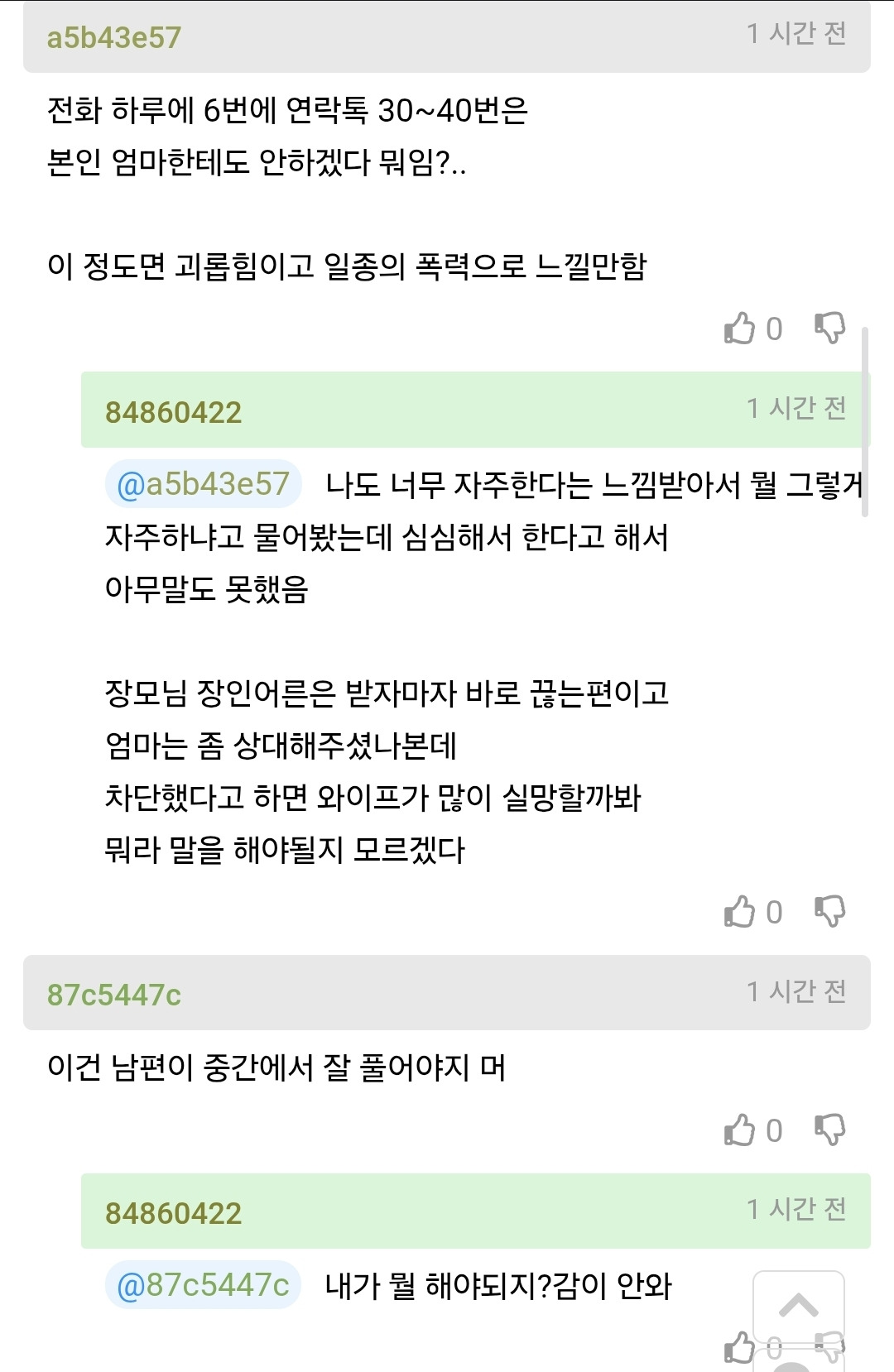 작성자슬러쉬는 파란색 작성시간 26.03.02 심심해서 한다고하몀 남편한테 안하고 왜 시댁에 하지? 저런것도 한두번이지 용건없이 순전히 심심하다는이유로 하루6번이면 나같아도 차단할것같긴해...상처받아도 어쩌겠음...