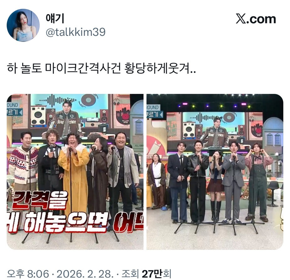 [흥미돋]놀토 마이크간격사건 작성자코고는강아지|작성시간26.03.01|조회수73,471 목록 댓글 12 글자크기 작게가 글자크기 크게가 출처: https://x.com/talkkim39/status/2027701998804734253?s=46X의 얘기님(@talkkim39)하 놀토 마이크간격사건 황당하게웃겨..x.com좁다;;;넓은데?? 다음검색 현재 게시글 추가 기능 열기 북마크 공유하기 신고 센터로 신고 댓글 댓글 12 댓글쓰기 답글쓰기 댓글 리스트 작성자땀배달기 | 작성시간 26.03.01 ㅋㅋㅋㅋㅋㅋㅋㅋㅋㅋㅋㅋㅋㅋㅋㅋㅋㅋㅋㅋㅋㅋ 작성자Re-start | 작성시간 26.03.01 아낰ㅋㅋㅋㅋㅋㅋㅋㅋㅋㅋㅋ 작성자이쿨립스 | 작성시간 26.03.01 ㅅㅂㅋㅋㅋㅋㅋㅋㅋㅋㅋㅋㅋㅋㅋ조째즠ㅋㅋㅋㅋㅋㅋㅋㅋㅋ 작성자rumyun, Coke | 작성시간 26.03.01 아시밬ㅋㅋㅋ개웃기닼ㅋㅋㅋㅋㅋㅋㅋㅋㅌㅋㅋㅋㅋㅋㅋㅋ영상보러가야지 작성자봉숭아꽃이물들기전에 | 작성시간 26.03.02 2번째 남정네들은 얼마나 왜소한거임 ㄷㄷ 댓글 전체보기