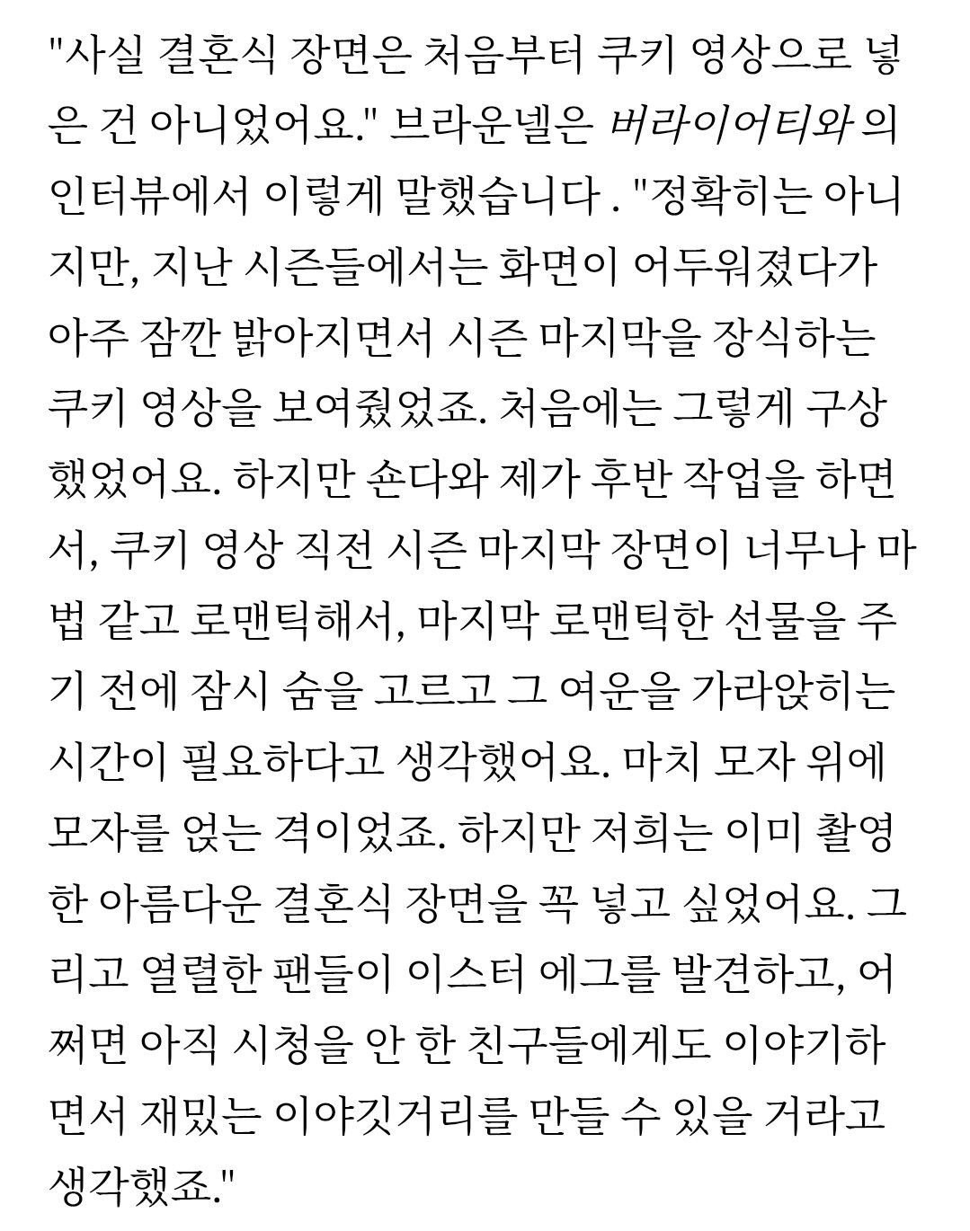 쇼러너들이 결혼식장면 꼭 넣어야한다고 밀어 붙여서