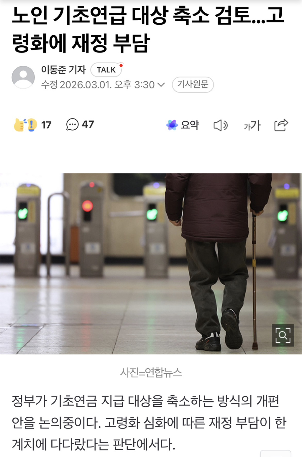 가뜩이나 우리나라 노인 복지도 안 좋은데..