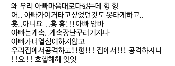 [스크랩] [흥미돋]만세가 송일국한테 집에서 공격하지 말라고 따진 이유.. 작성자왕펭귄악개|작성시간26.03.01|조회수19,609 목록 댓글 25 글자크기 작게가 글자크기 크게가 출처 :https://youtu.be/OFw26UvgKJ0 동영상떼를써도 귀여운 삼둥이 막내 만세속상해서 떼를 쓰는 모습까지도 너무나 귀엽고 사랑스러운 송만세 (송일국씨 인스타에서 퍼옴) https://www.instagram.com/songilkook/www.youtube.com 진짜 존나 공격함.. 다음검색 스크랩 원문 : *여성시대* 차분한 20대들의 알흠다운 공간 현재 게시글 추가 기능 열기 북마크 공유하기 신고 센터로 신고 댓글 댓글 25 댓글쓰기 답글쓰기 댓글 리스트 작성자인생여전그래도간다 | 작성시간 26.03.01 ㅋㅋㅋㅋㅋㅋㅋ아 근데 이것만 봐도 아빠가 키워야하네 작성자별그지같은대서온그대 | 작성시간 26.03.01 요~! 작성자뭘보시는데요 | 작성시간 26.03.01 아 시발 왤캐 웃김ㅋㅋㅋㅋㅋㅋㅋㅋㅌㅌㅌㅋㅋㅋㅋㅋㅋㅋ 작성자고등어구이구이 | 작성시간 26.03.01 저때 옷이 진짜 충격적으로 귀여웠어 작성자감감한밤에 가만가만히 | 작성시간 26.03.02 ㅋㅋㅋㅋ근데 해맑게웃음애들이 댓글 전체보기