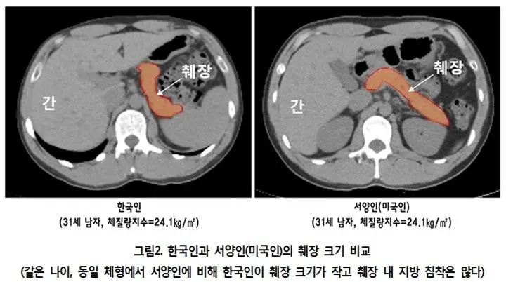 2. 췌장 내 침착된 지방의 양은 서양인보다 한국인이 22.8% 많음