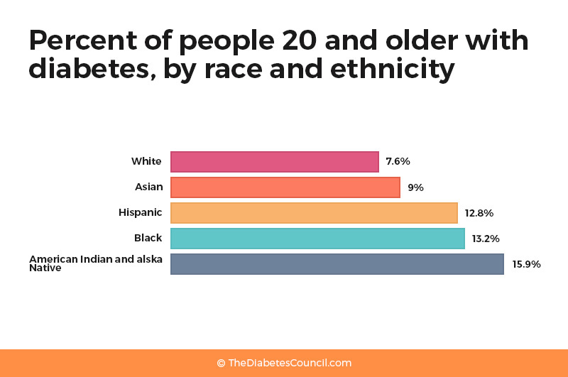 What you may not know is that ethnicity also plays a major role. That's right. African Americans, Hispanics, American Indians, and some Pacific Islanders and Asian Americans are all at higher risk for type 2 diabetes than Caucasians, according to the American Diabetes Association(ADA)