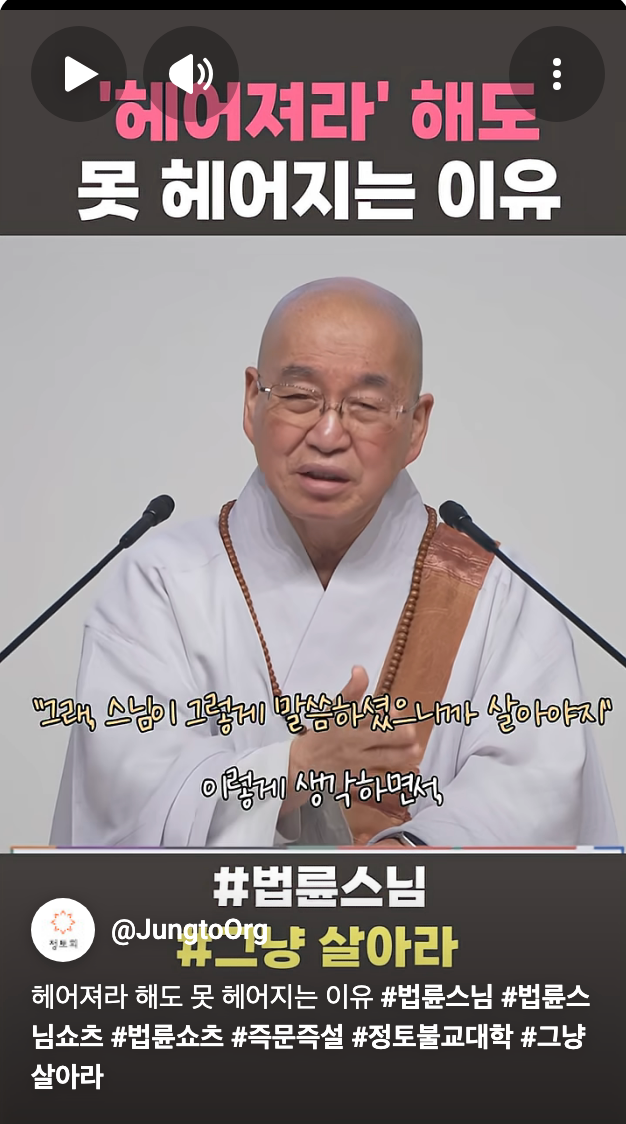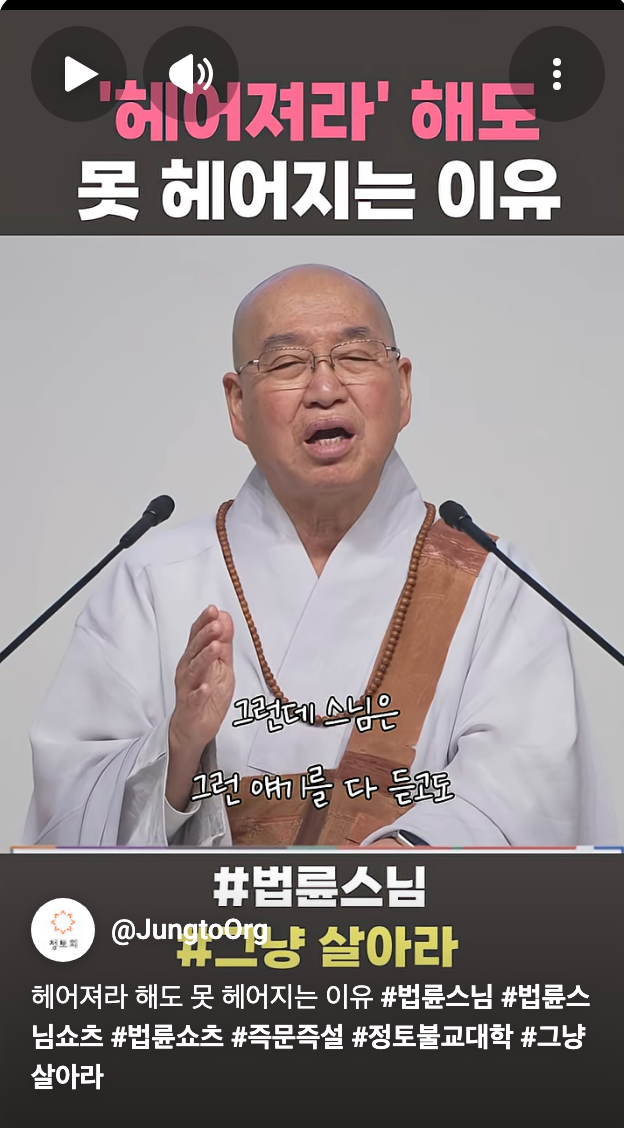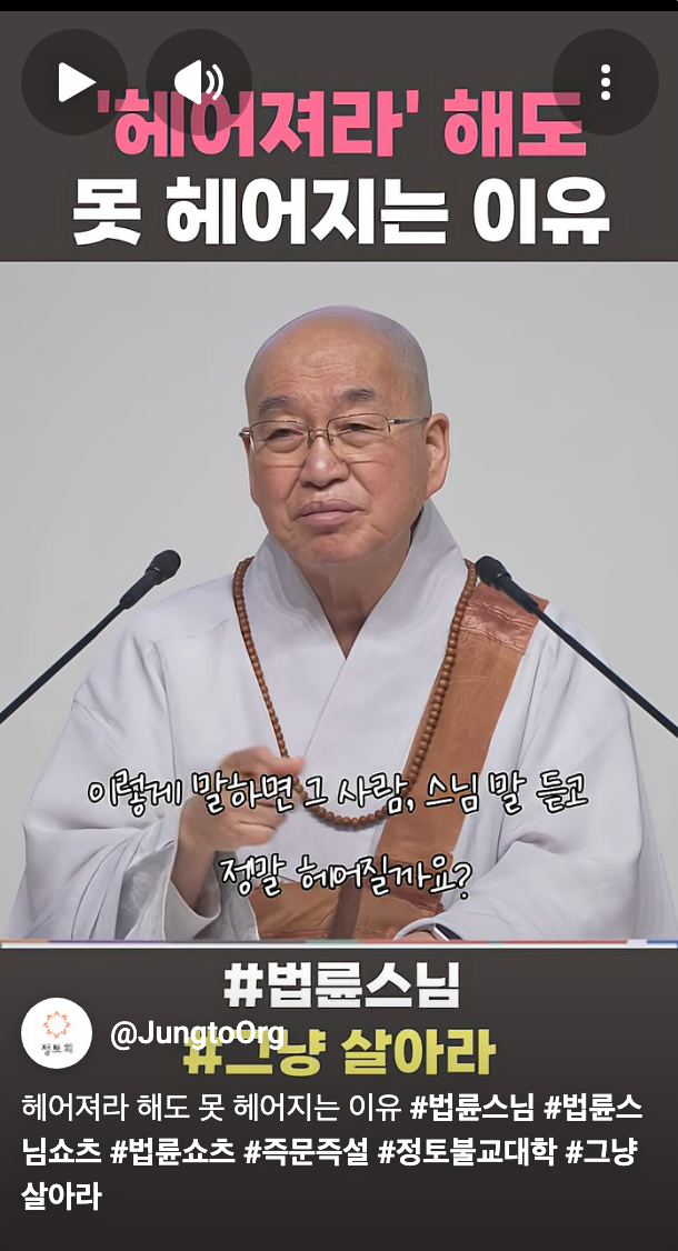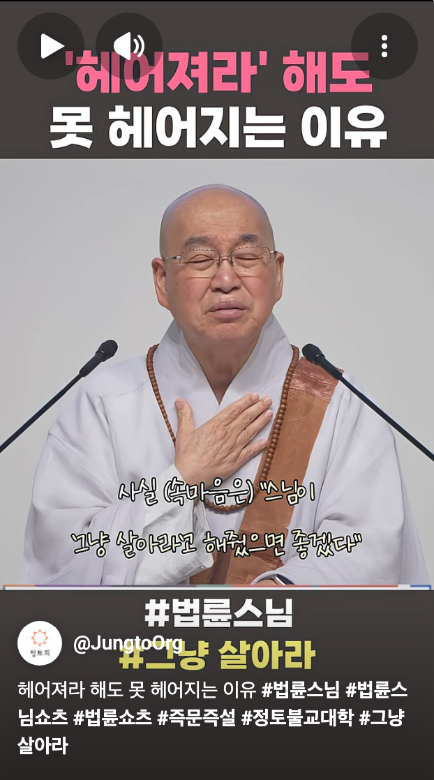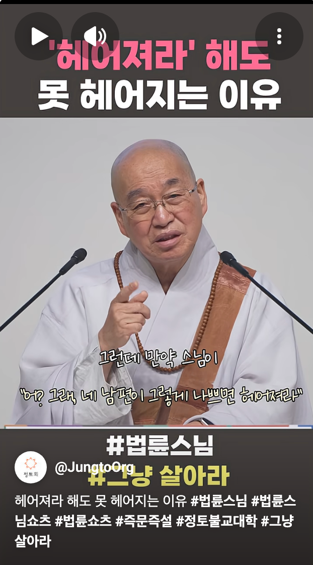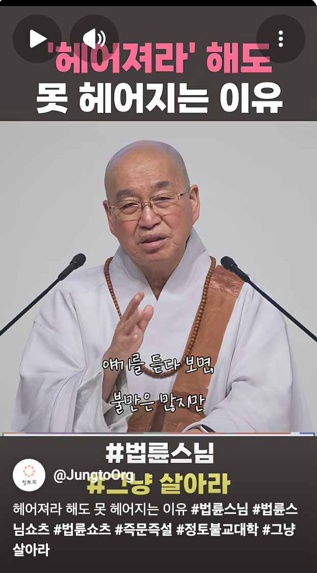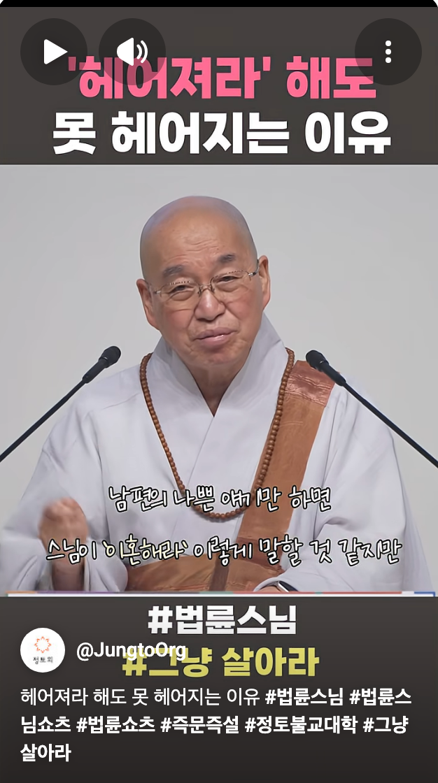 [스크랩] [흥미돋]법륜스님이 기혼들 그냥 살아라 하는이유.jpg 작성자피티오|작성시간26.03.01|조회수36,062 목록 댓글 51 글자크기 작게가 글자크기 크게가 출처: 여성시대 블랙미러1 https://youtube.com/shorts/DRraRvgXiEY?si=wkoJ5eDtHFQMCAGS 다음검색 스크랩 원문 : *여성시대* 차분한 20대들의 알흠다운 공간 현재 게시글 추가 기능 열기 북마크 공유하기 신고 센터로 신고 댓글 댓글 51 댓글쓰기 답글쓰기 댓글 리스트 작성자말초신경 | 작성시간 26.03.02 진심 불쌍하다.. 작성자말랑말랑한말랑이 | 작성시간 26.03.02 스님도 죠를 하시네ㅋㅋㅋㅋㅋㅋㅋㅋ 작성자내 인생에 랄라블라 하지마 | 작성시간 26.03.02 나 어제도 당함 ㅅㅂ 끝엔 은근히 감싸고 돔 환장.... 스님도 수없이 당하신거 같아서 위로가 된다 작성자你爸也是韩男 | 작성시간 26.03.02 역시 도를 터득하셔서 그런지 우리보다 일찍 죠를 깨우치신분이야 작성자냉동망두 | 작성시간 26.03.02 죠 댓글 전체보기