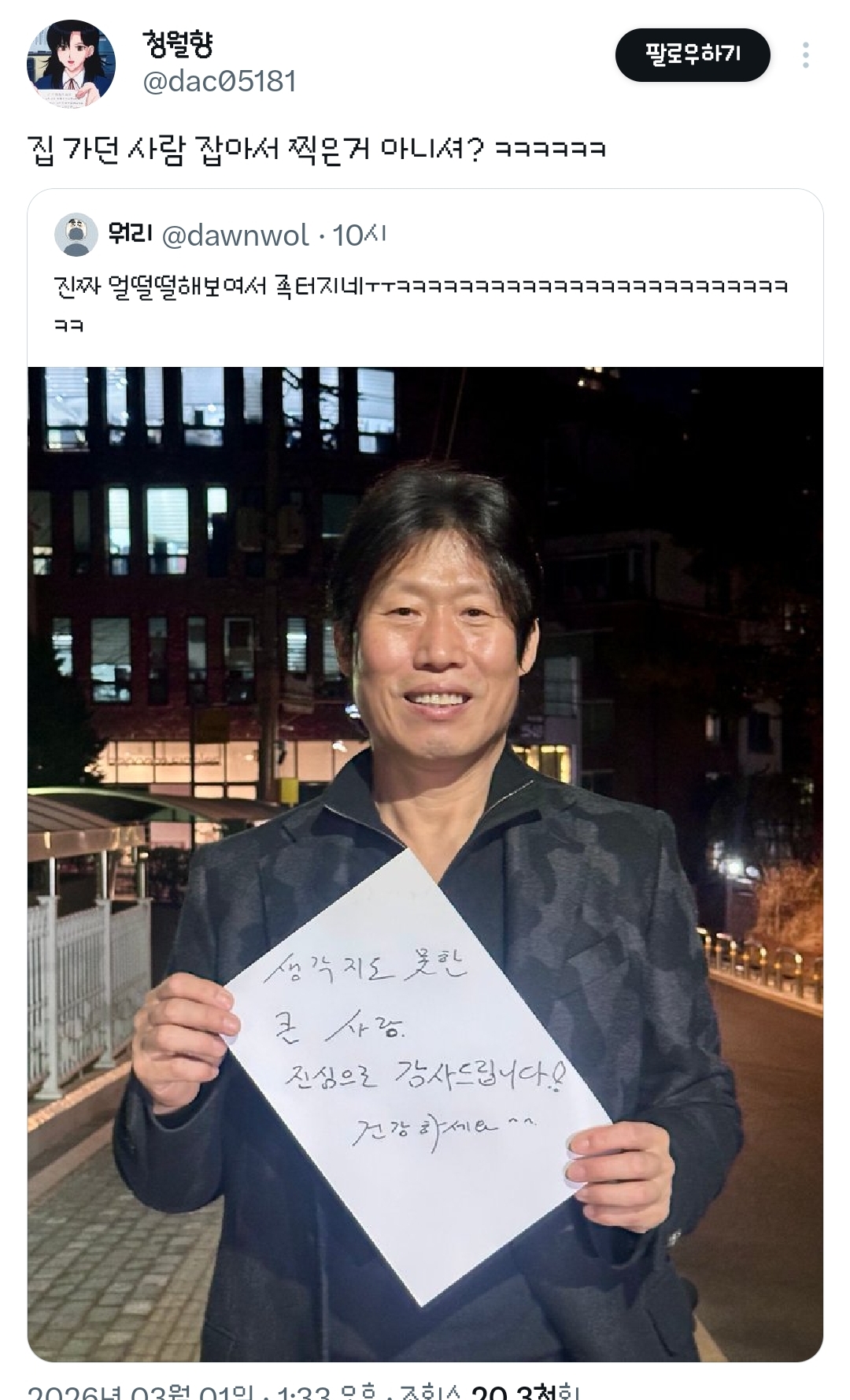 작성자ㅂㄷㅇㅎㅅㅇ 작성시간 26.03.02 우리 이모부 닮음