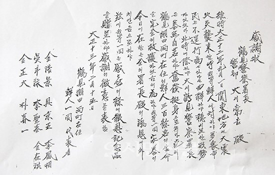 이후 살아남은 조선인들이 오카와 서장에게 감사의 편지를 남김.