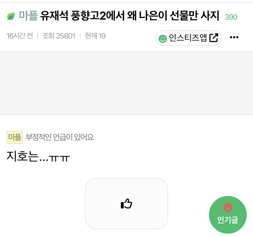 [스크랩] [흥미돋]유재석 풍향고2에서 왜 나은이 선물만 사지.instiz 작성자Tory-|작성시간26.03.01|조회수48,124 목록 댓글 84 글자크기 작게가 글자크기 크게가 출처: https://instiz.net/name_enter/98784779[마플] 유재석 풍향고2에서 왜 나은이 선물만 사지지호는...ㅠㅠwww.instiz.net본인 인생이나 걱정하지..세상은 넓고 이상한 사람들은 많다.. 다음검색 스크랩 원문 : *여성시대* 차분한 20대들의 알흠다운 공간 현재 게시글 추가 기능 열기 북마크 공유하기 신고 센터로 신고 댓글 댓글 84 댓글쓰기 답글쓰기 댓글 리스트 작성자라리루라리 | 작성시간 26.03.02 지호 아빠카드가 유재석카드고 엄카가 나경은카드에요누구보다 나아요 작성자허걱스 | 작성시간 26.03.02 본인이 안원한다잖아 ….. 그 어떤 부모보다도 아들한테 잘해줄텐데 별 걱정을 다하네 작성자폭식모드on | 작성시간 26.03.02 헐 지호가 고딩이야?? 그럼 저런건 안좋아하지 작성자이홍아래 | 작성시간 26.03.02 지호가 썼니 작성자레어닉네임찾기 | 작성시간 26.03.02 지호가 썼니 댓글 전체보기