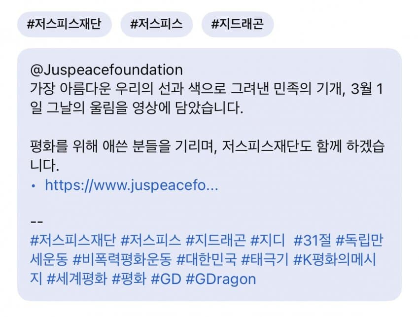 [흥미돋]지드래곤 삼일절 인스스🇰🇷 작성자ruveiu|작성시간26.03.01|조회수38,658 목록 댓글 61 글자크기 작게가 글자크기 크게가 출처: https://theqoo.net/square/4111229991더쿠 - 지드래곤 저스피스재단 삼일절🇰🇷 +인스스추가여기를 눌러 링크를 확인하세요theqoo.nethttps://youtu.be/aKw3XbmTxOk+이전 지디 인스타 다음검색 현재 게시글 추가 기능 열기 북마크 공유하기 신고 센터로 신고 댓글 댓글 61 댓글쓰기 답글쓰기 댓글 리스트 작성자동물사랑단 | 작성시간 26.03.02 굿 작성자출근길인데퇴근하고싶어 | 작성시간 26.03.02 굿~! 작성자매떡김말이 | 작성시간 26.03.02 아 입체드레곤이라고 하는거 개웃기네 작성자악운에강한여시 | 작성시간 26.03.02 이런행보 진심 좋다생각함 선한영향력 굿 작성자하쿠나앙낭냥 | 작성시간 26.03.02 굿 멋있다! 댓글 전체보기