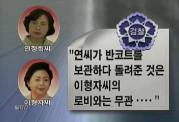 이형자의 자작극이다라는 결론이 나왔고 뇌물 수수는 사실상 혐의 없음.