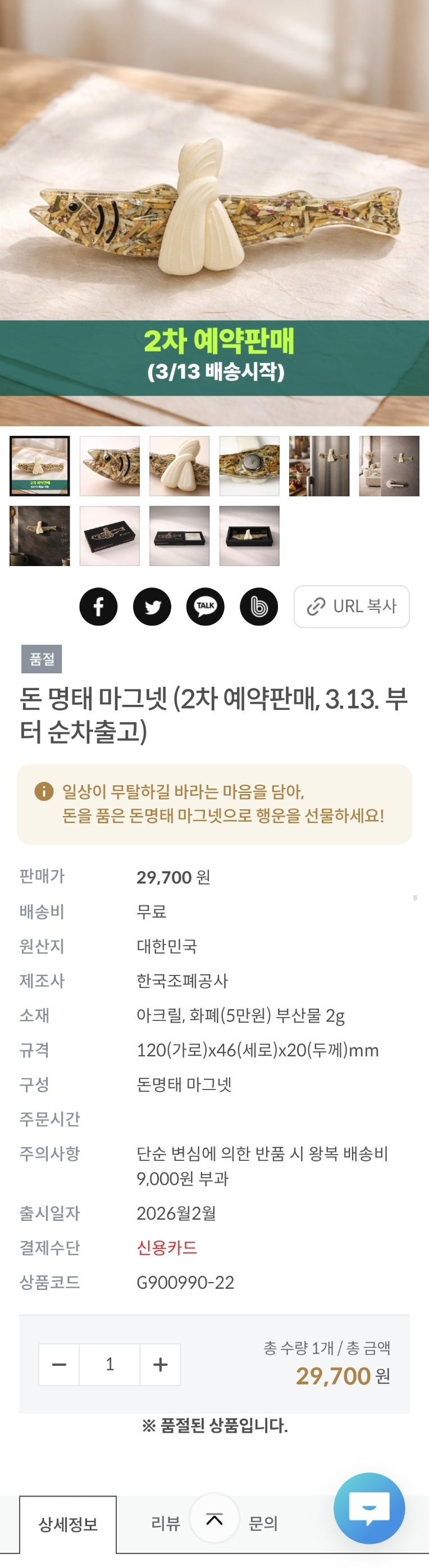 [흥미돋]한국조폐공사 돈 명태 마그넷 첫날 품절 (3/13 배송시작) 작성자여단오여|작성시간26.03.02|조회수47,506 목록 댓글 49 글자크기 작게가 글자크기 크게가 출처: 여성시대 여단오여 재입고 해주라 다음검색 현재 게시글 추가 기능 열기 북마크 공유하기 신고 센터로 신고 댓글 댓글 49 댓글쓰기 답글쓰기 댓글 리스트 작성자누룽햄강쥐 | 작성시간 26.03.02 귀엽다 ㅋㅋㅋ 작성자차단 늘려줘 | 작성시간 26.03.02 나도 살래요.. 작성자세후800억 | 작성시간 26.03.02 아 더 만들어요..제발요 작성자말카 | 작성시간 26.03.02 또 안해? ㅠㅠ 작성자호올스xs | 작성시간 26.03.02 방금 오류였나 왜 풀렸다가 다시 품절 됐지 ㅠㅠㅠㅠㅠㅠㅠ 댓글 전체보기