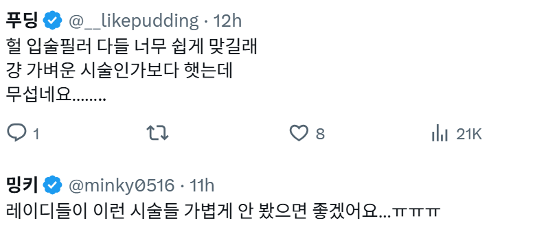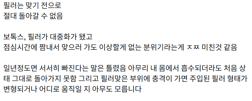 작성자히동여친 작성시간 26.03.02 필러로 유명한 병원도 보면 정작 의사는 필러안맞고 걍 수술함ㅋㅋㅋㅋ
