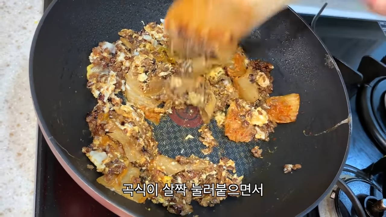 - 잡곡밥에 김치와 계란 2개 넣어서 고슬고슬하게 볶은 김치볶음밥