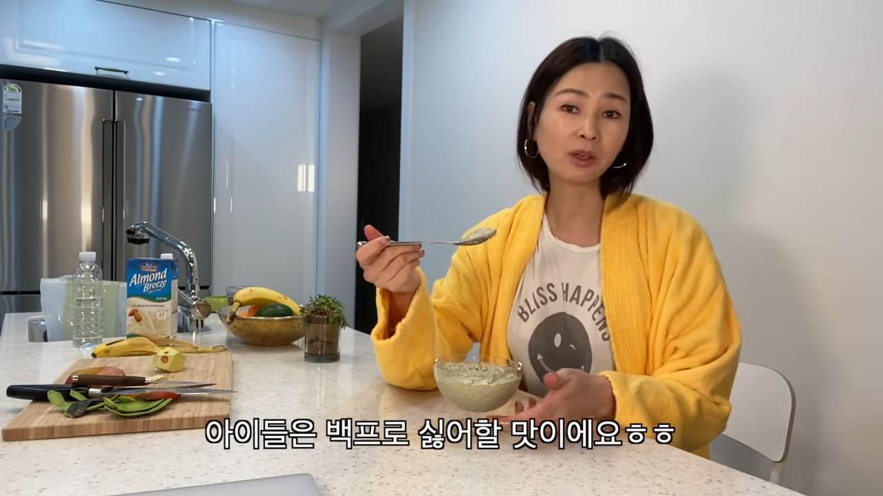 - 아보카도, 바나나, 사과, 견과류와 아몬드브리즈 넣고 갈아서 스무디