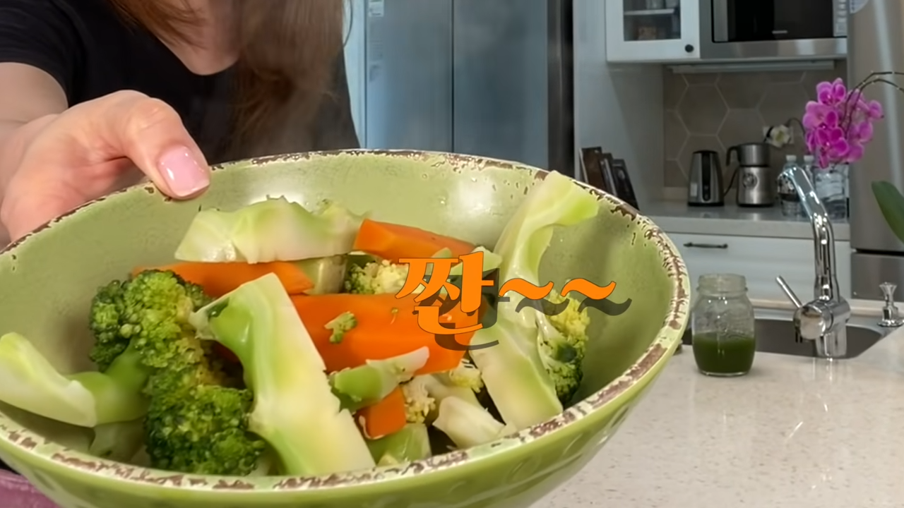 - 브로콜리 당근 찐 것에 소금 뿌려서