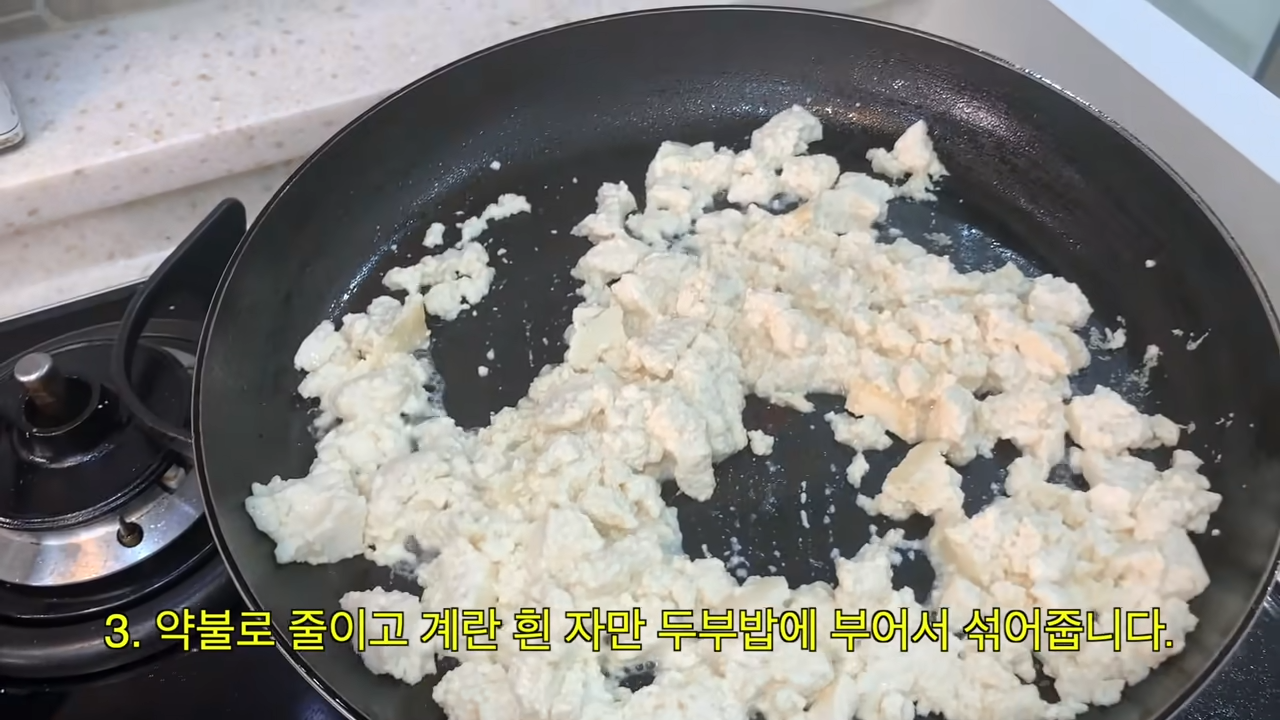 - 두부밥 (두부 으깨고 계란 흰자와 섞어서 팬에 볶기)