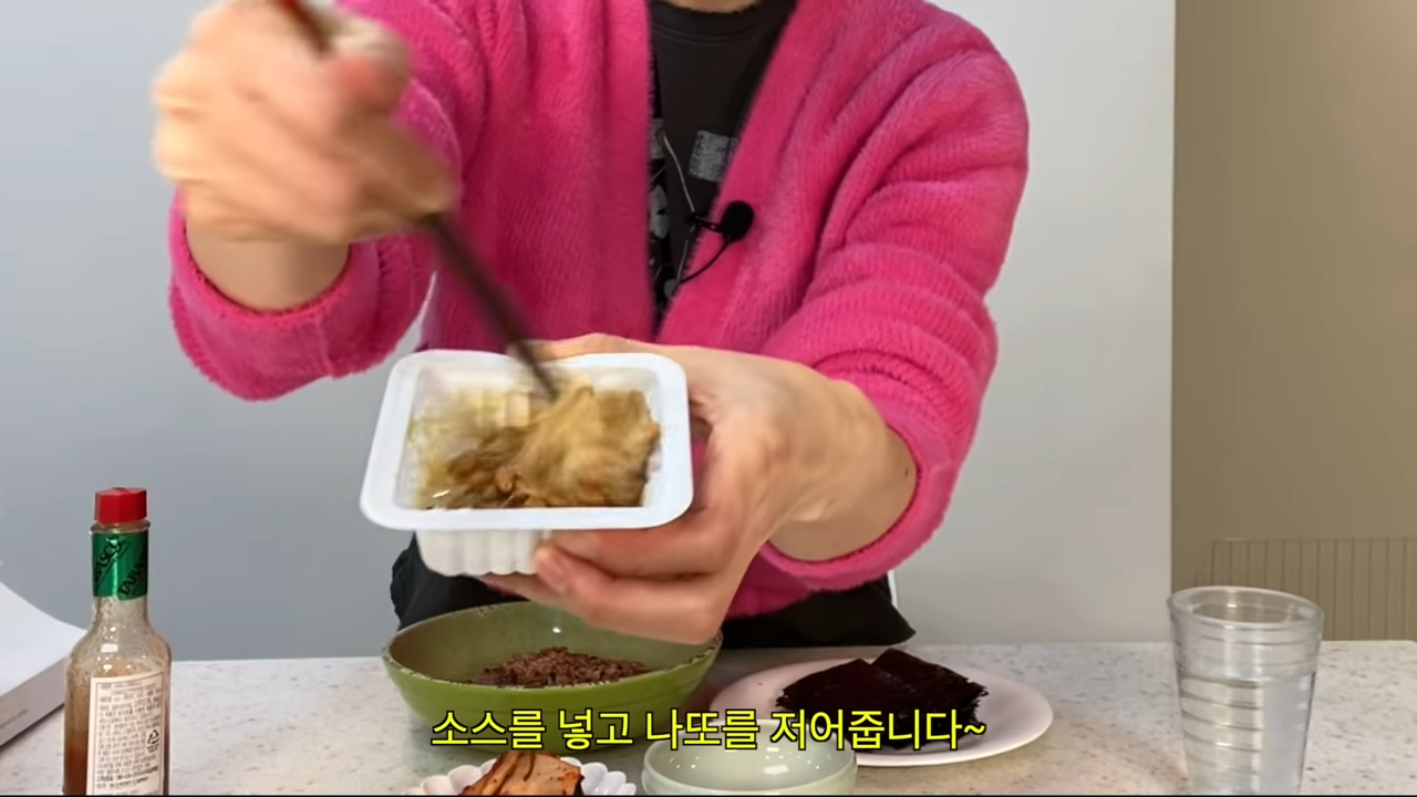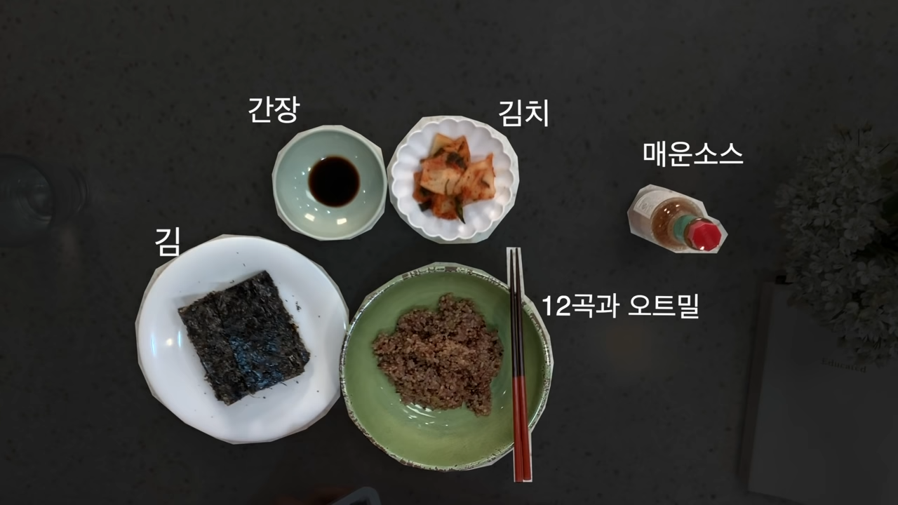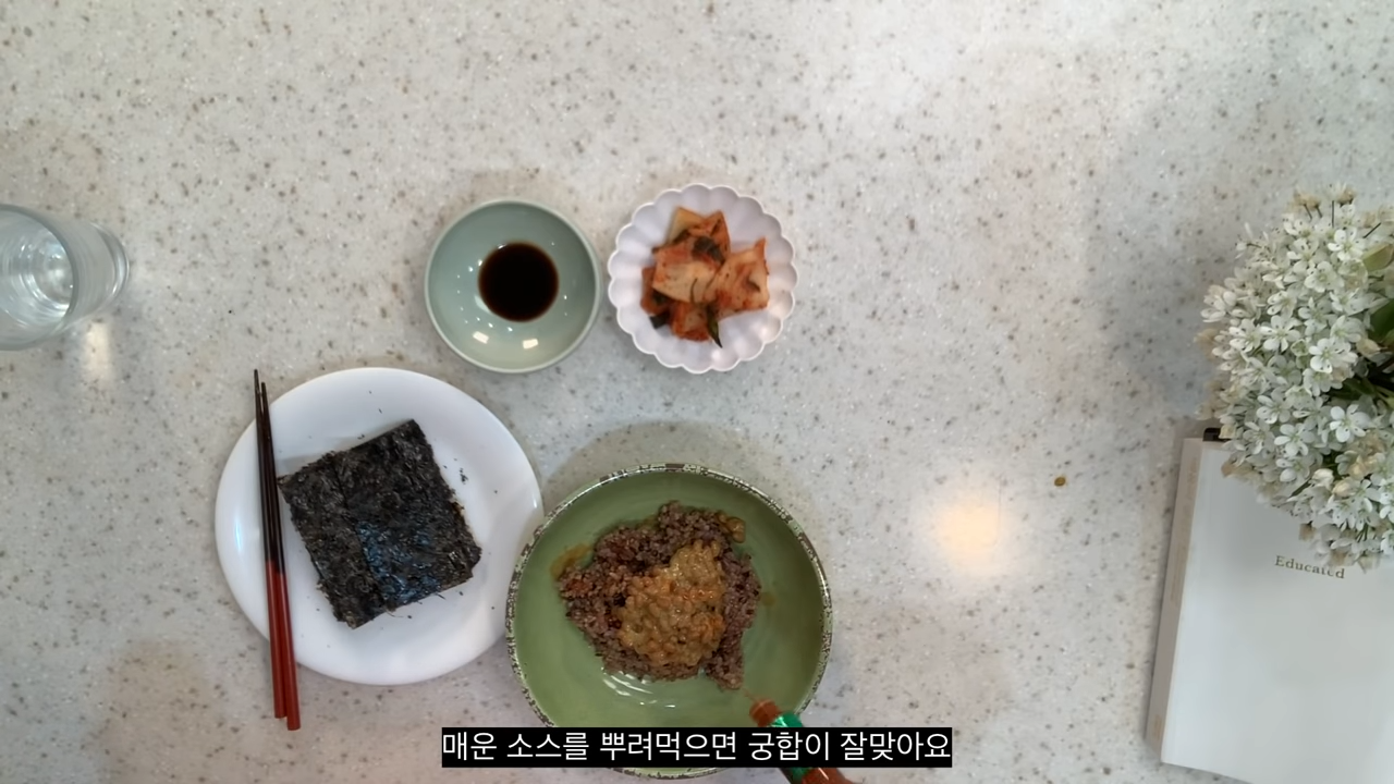 12곡 오트밀 밥에 낫또 얹고 핫소스 뿌려서 김에 싸먹기