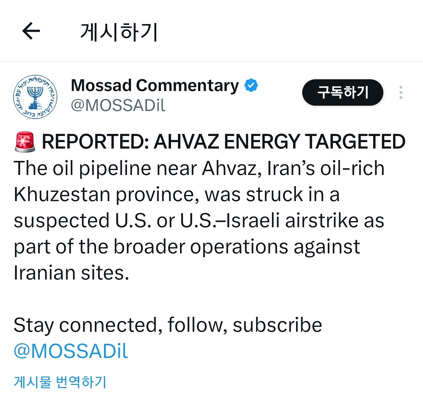 [스크랩] [기타]미국/이스라엘 : 이란이 사우디 정유 시설을 공격해? 그럼 우리도 한다 작성자아흐레|작성시간26.03.02|조회수20,533 목록 댓글 17 글자크기 작게가 글자크기 크게가 이란의 아흐바즈 송유관이 공격 당했습니다 다음검색 스크랩 원문 : 도탁스 (DOTAX) 현재 게시글 추가 기능 열기 북마크 공유하기 신고 센터로 신고 댓글 댓글 17 댓글쓰기 답글쓰기 댓글 리스트 작성자자증해 | 작성시간 26.03.02 존나 지들 맘대로 지구쓰네...;;; 작성자은밀한 김밥까페 | 작성시간 26.03.02 개노답ㅅㅂ 작성자써핑가보자 | 작성시간 26.03.02 내 기름.... 작성자봄인겨 | 작성시간 26.03.03 ㅅㅂ 작성자산타도울고갈금쪽이 | 작성시간 26.03.03 아 지랄을 하네 진짜 댓글 전체보기
