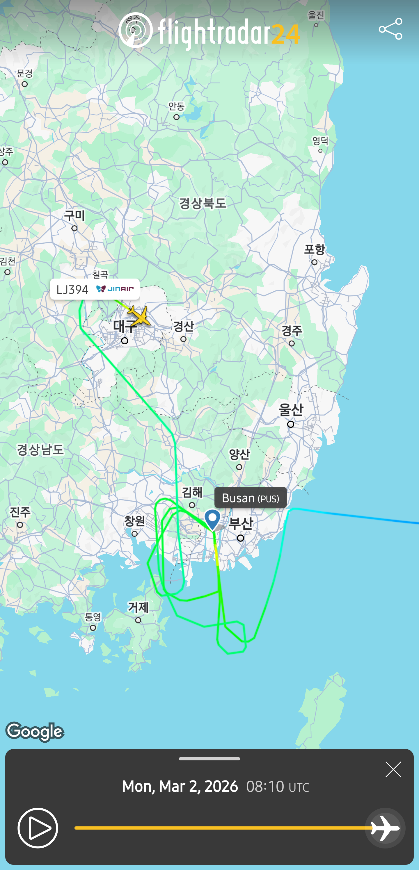 무조건 김해로 가거나 아니면 출발지인 나고야로 돌아가야함(...)