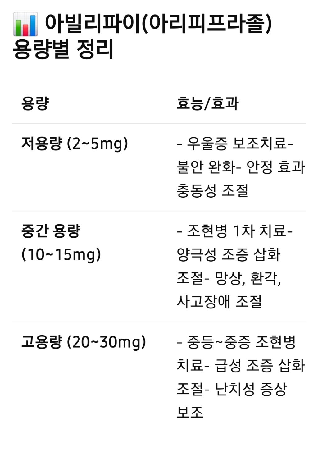 내가 의사선생님께 직접 들은 얘기론 아빌리파이가 정신적인 질환에 효과가 굉장히 광범위해서 이 약 빼고 먹으면 치료가 잘 안될거란 말 들음