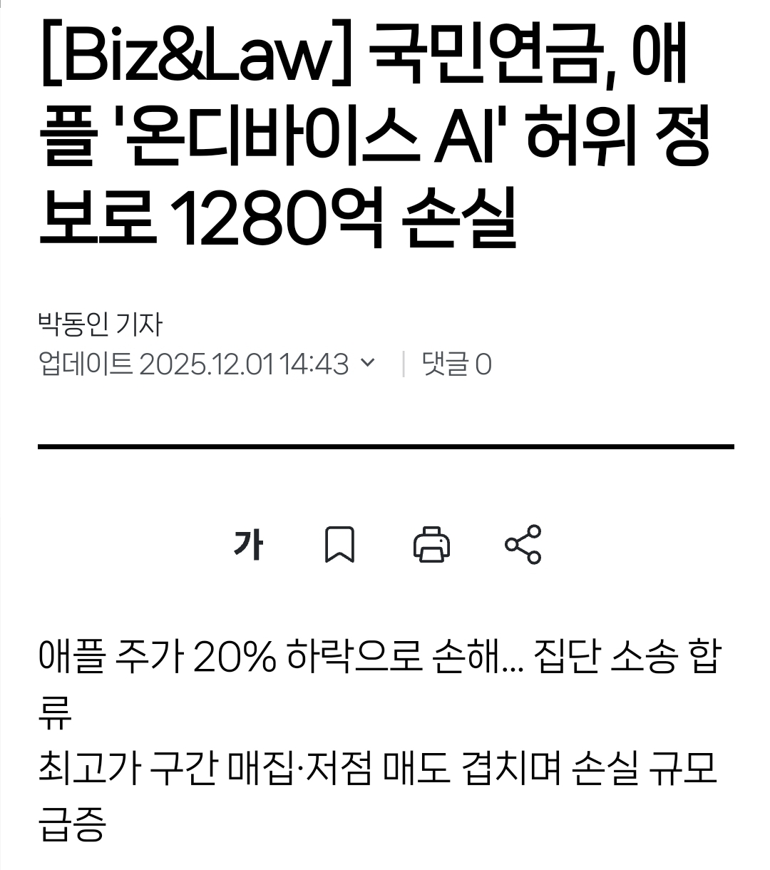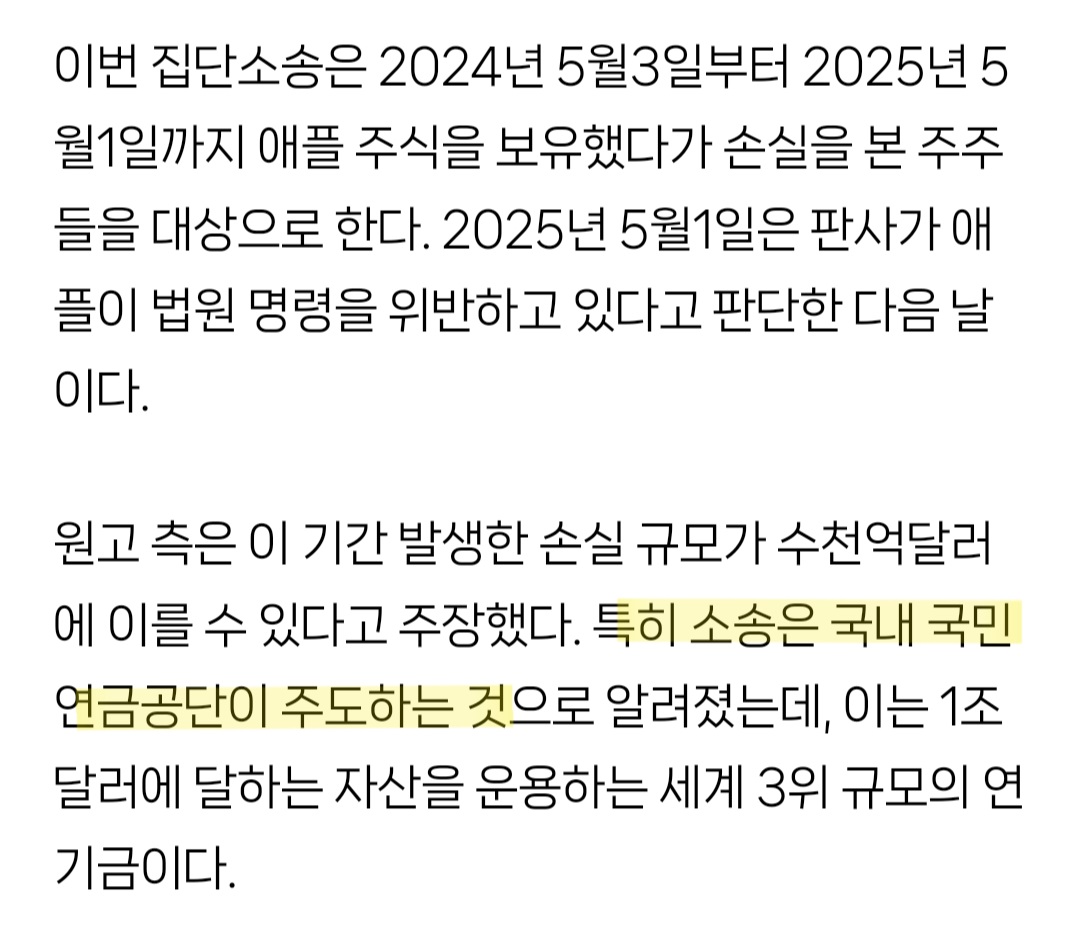 국민연금이 해당 사안으로 인한 애플 주식 하락으로