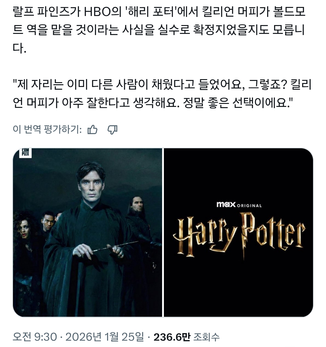 계속 킬리언 머피가 볼드모트라는 말이 있다면서 기사 나오고
