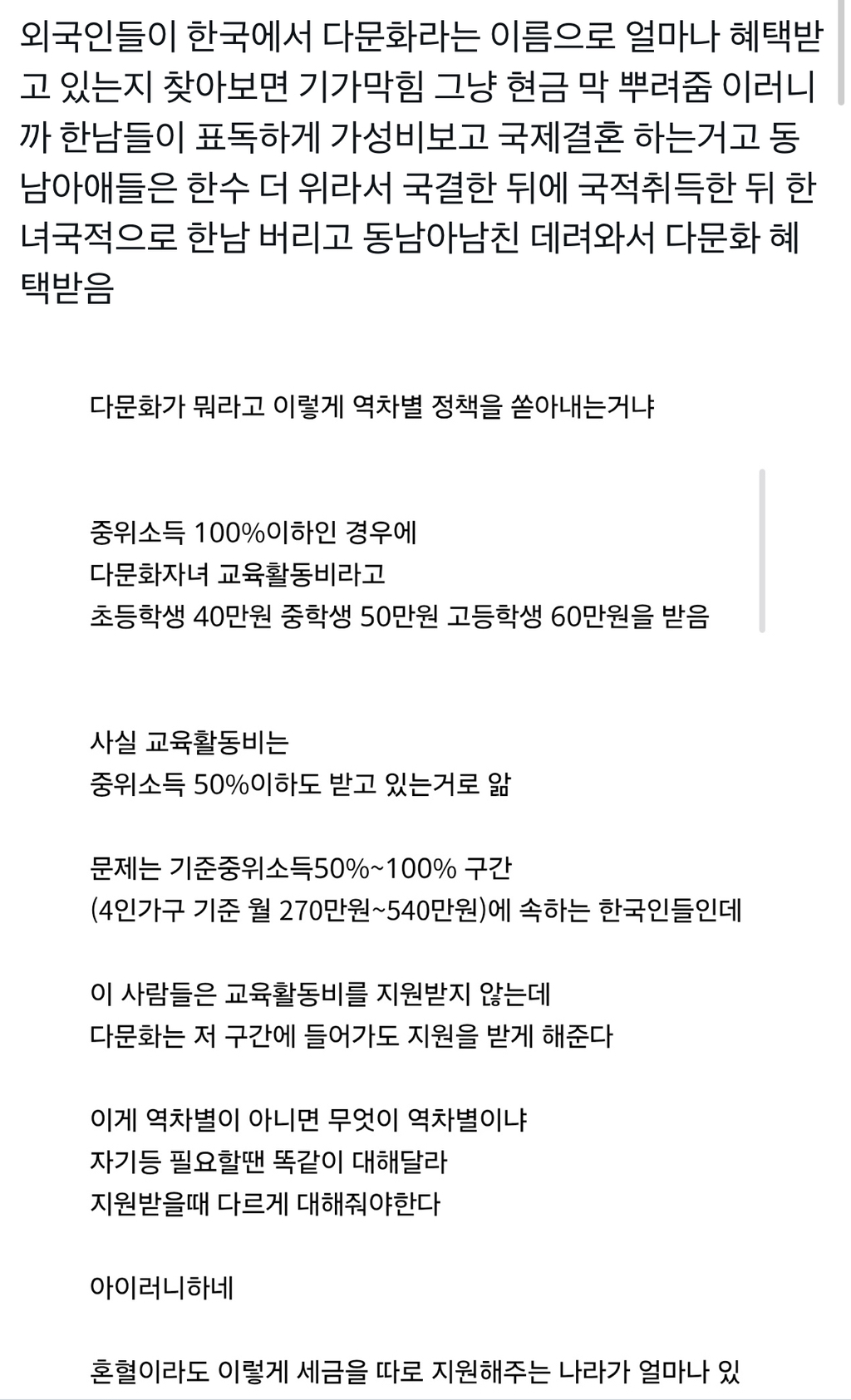 작성자백날빌어봐라 작성시간 26.03.03 저거 그냥 남녀상관없이 한국인+외국인 결혼해서 살면 다 지원해주는거야…?