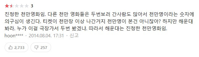 [흥미돋]수식어가 진짜 천만 영화와 비공식 천만 영화라고 불려진 영화 2편 작성자커피캡슐|작성시간26.03.03|조회수34,369 목록 댓글 73 글자크기 작게가 글자크기 크게가 출처: https://theqoo.net/square/4112497209N차 관람 없었기 때문에 진짜 천만이란 수식어가 달림남자들이 OCN에서 재방하면 무조건 다시 봐서 비공식 천만 영화라고 불림 다음검색 현재 게시글 추가 기능 열기 북마크 공유하기 신고 센터로 신고 댓글 댓글 73 댓글쓰기 답글쓰기 댓글 리스트 작성자너섬 | 작성시간 26.03.03 짱구야~ 작성자에혀피곤하다 | 작성시간 26.03.03 난 둘다 재미있게봄ㅋㅋㅋㅋ해운대 n차는 안했지만ㅋㅋ 바람도 이래저래 5번 본듯 ? 작성자우주여신 아이린 | 작성시간 26.03.03 바람 봣었는데 재미 없어서 기억도 잘 안나 작성자수원수원수원 | 작성시간 26.03.03 그라믄 안돼~ 둘 다 부산이 배경이네 작성자놀면뭐하나재밌겠지 | 작성시간 26.03.03 짱구야~ 댓글 전체보기