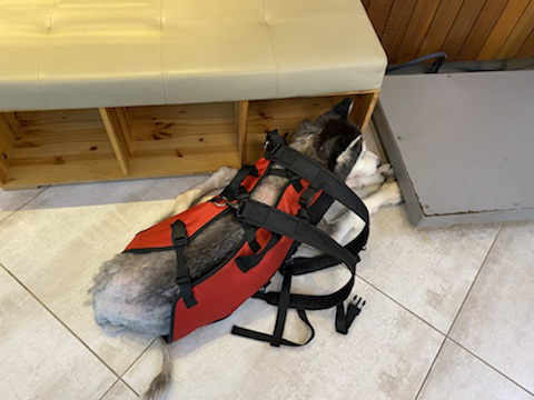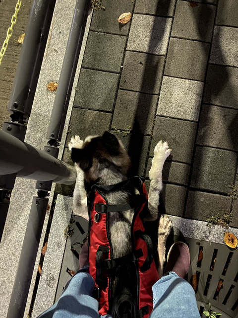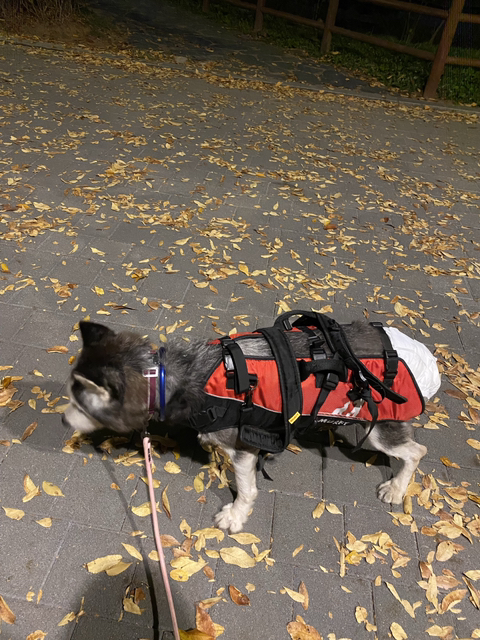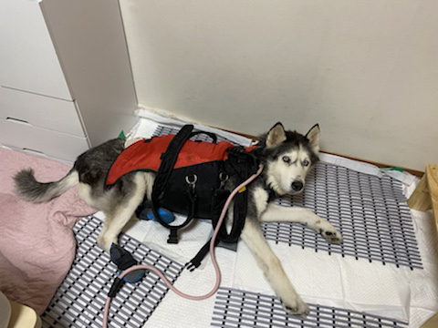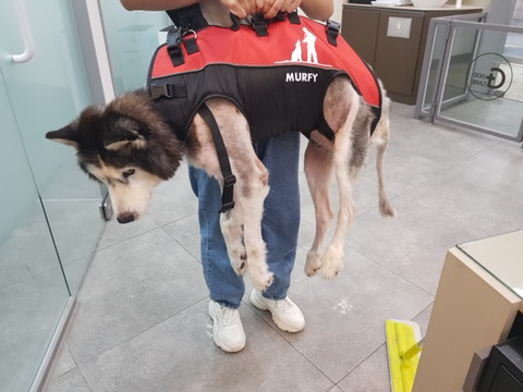 하네스+뒷다리 보조기구도 구매해서 내가 뒷다리를 받쳐줌