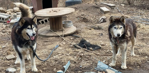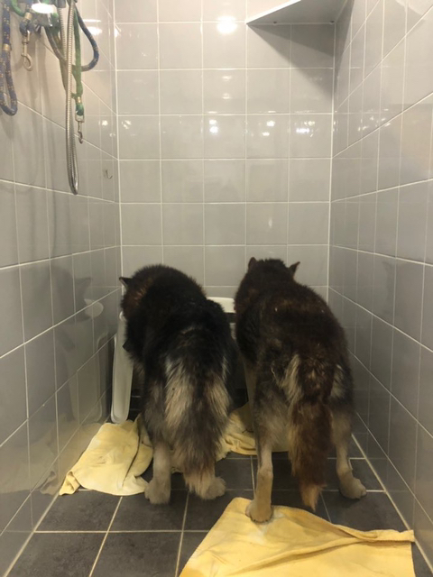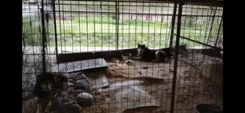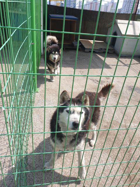 지난 2년간 마당에 목줄 묶여져 살던 아이들인데 처음으로 견사에서 자유롭게 돌아다닌듯..