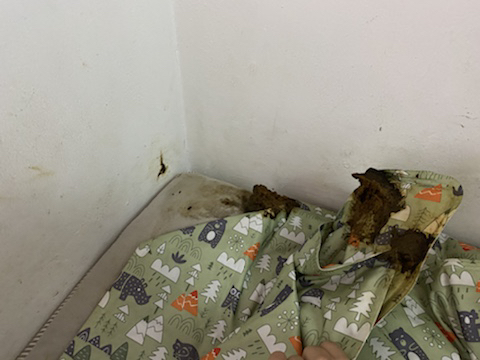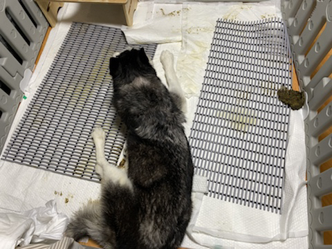 근데 애가 뒷다리 힘이 없으니 대변은 서서 볼수가 없어.... 누운채로 자리에다가 해버려